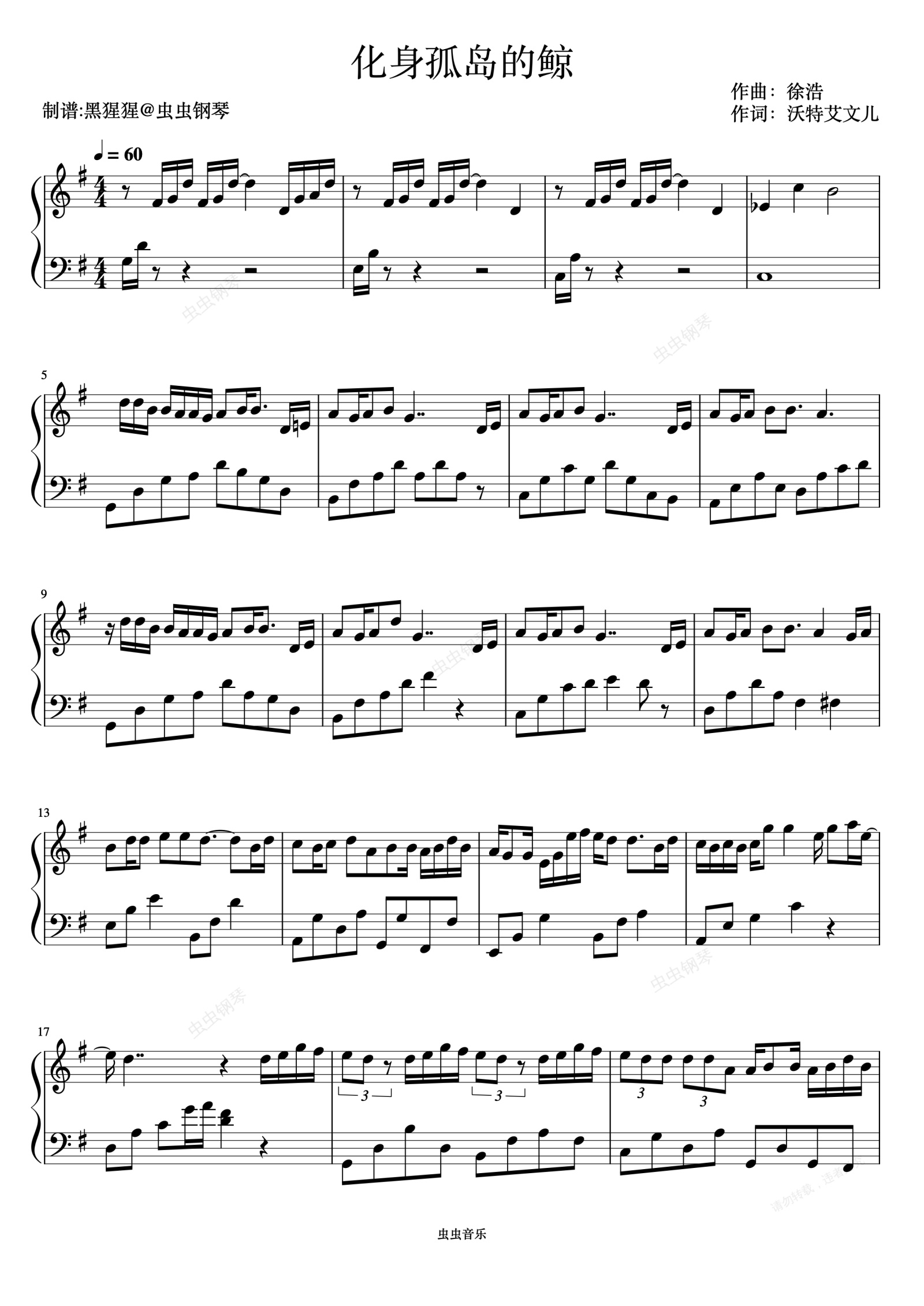 钢琴谱:周深-G调 《化身孤岛的鲸》