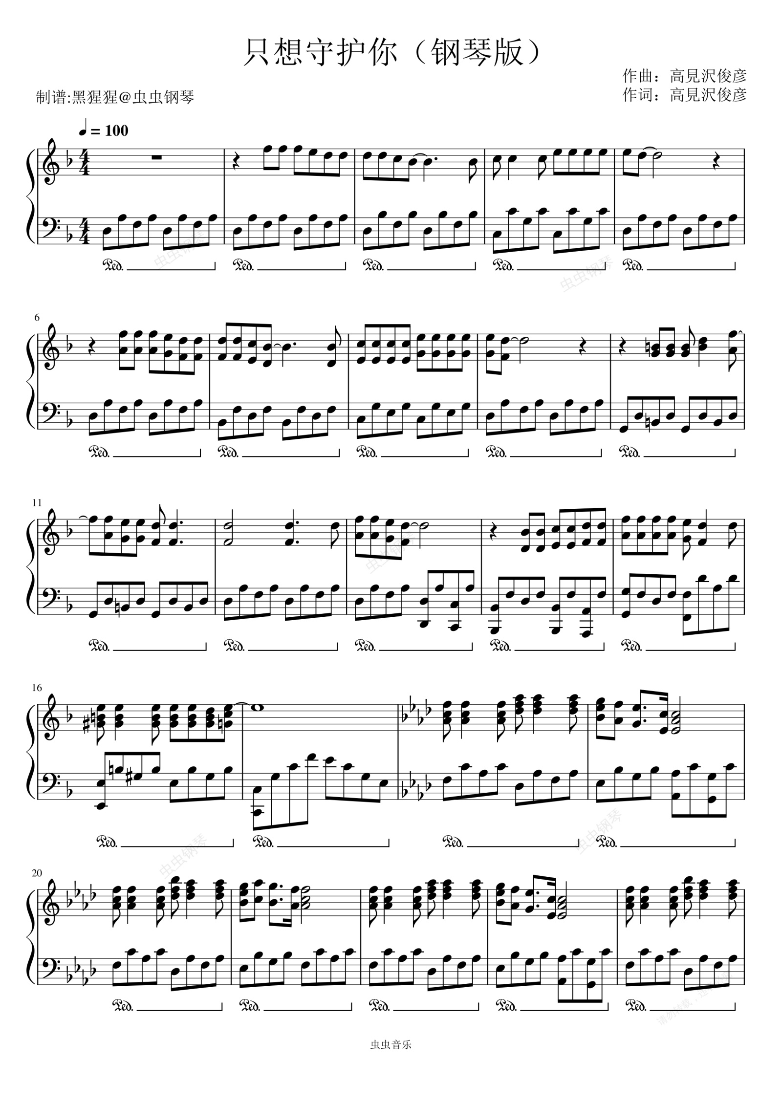 钢琴谱:佐藤堇-F调 《只想守护你 戴拿奥特曼片尾曲》