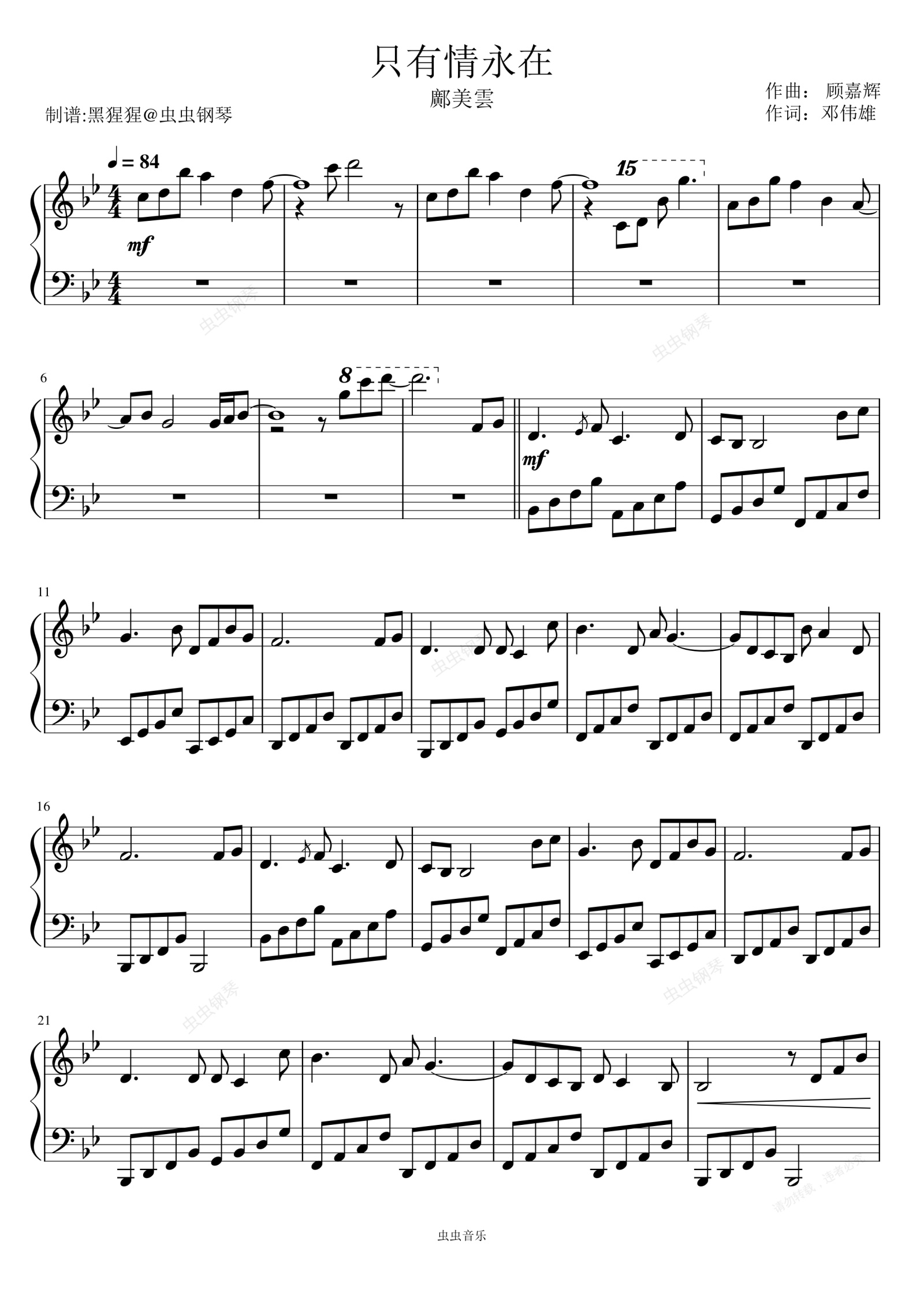 钢琴谱:邝美云-Bb调 《只有情永在》