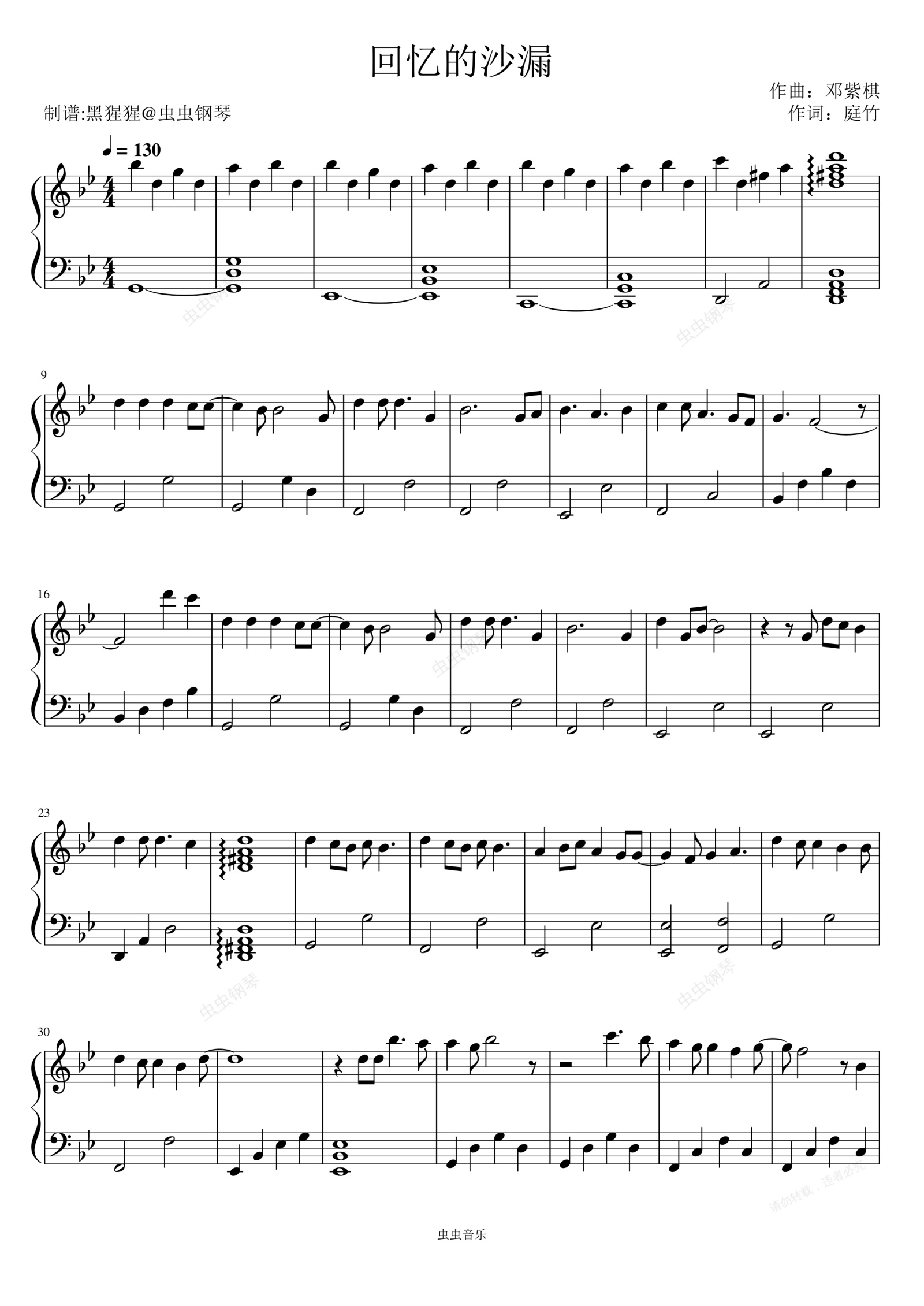 钢琴谱:邓紫棋-Bb调 《回忆的沙漏》
