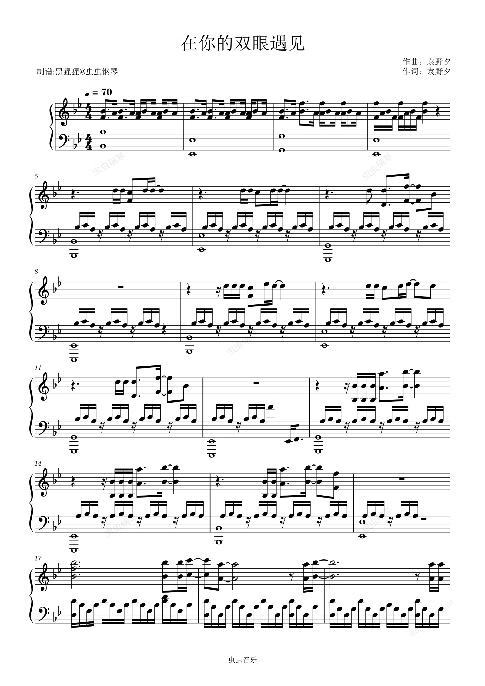钢琴谱:袁野夕-Bb调 《在你的双眼遇见》