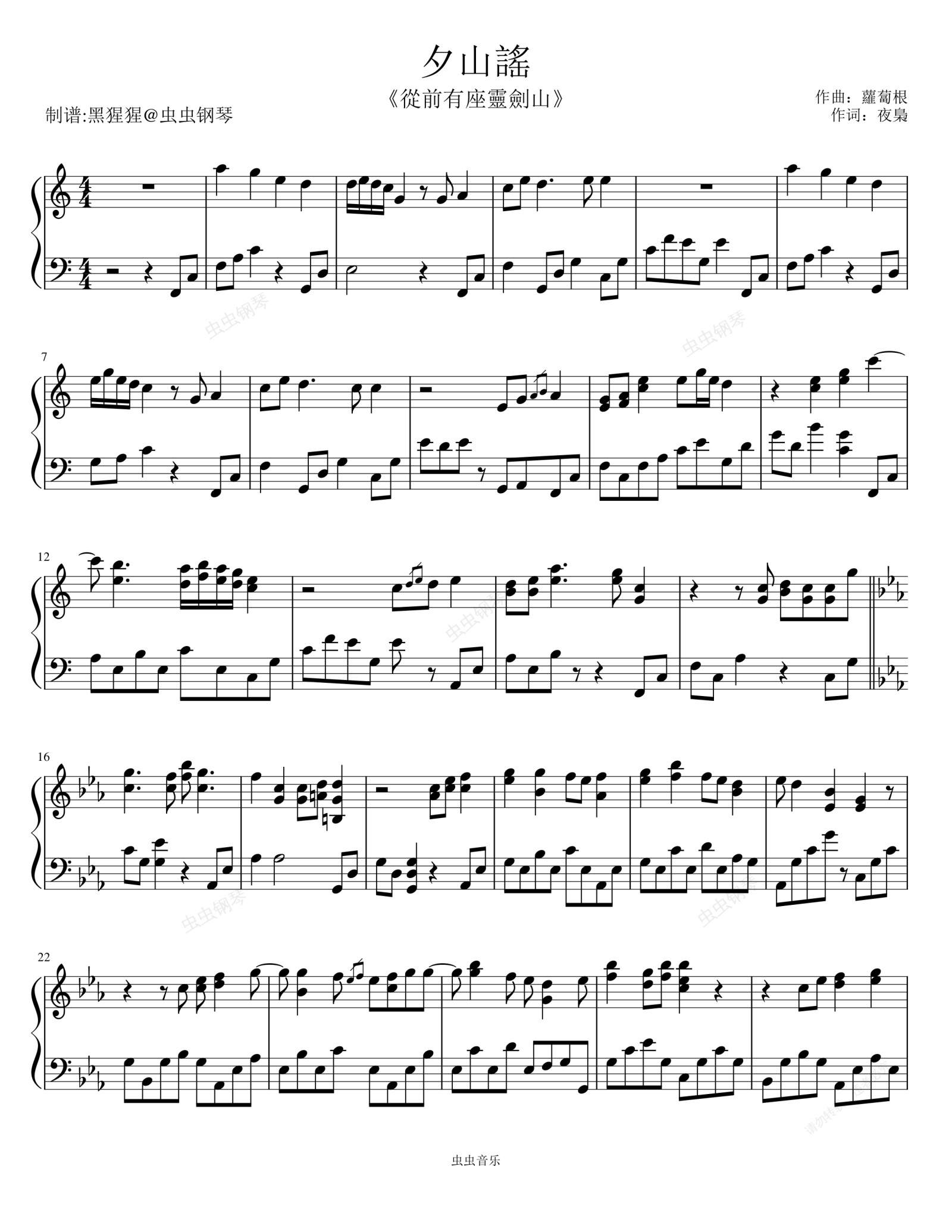 钢琴谱:ぶ獣-C调 《夕山谣》