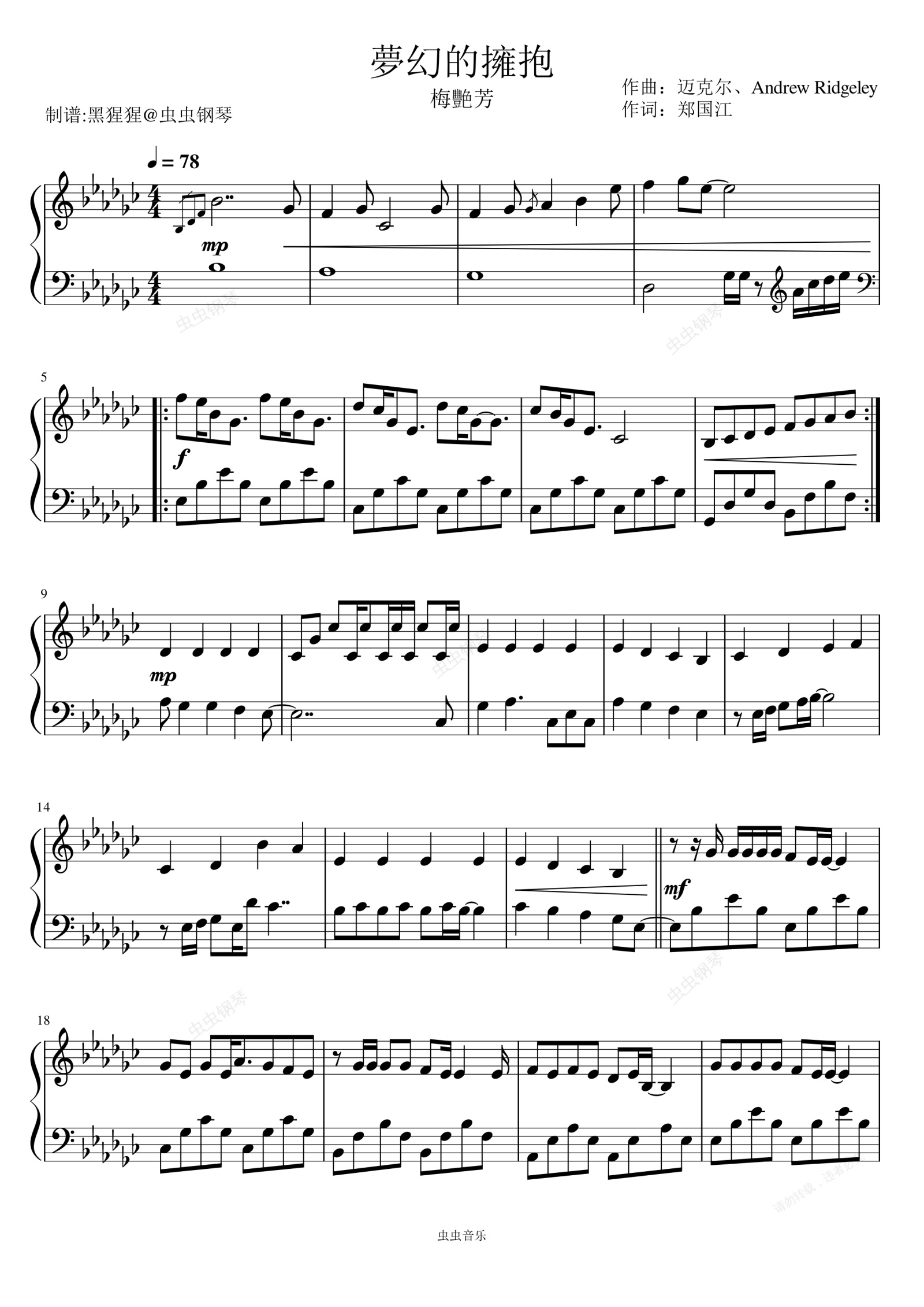 钢琴谱:梅艳芳-Gb调 《梦幻的拥抱》