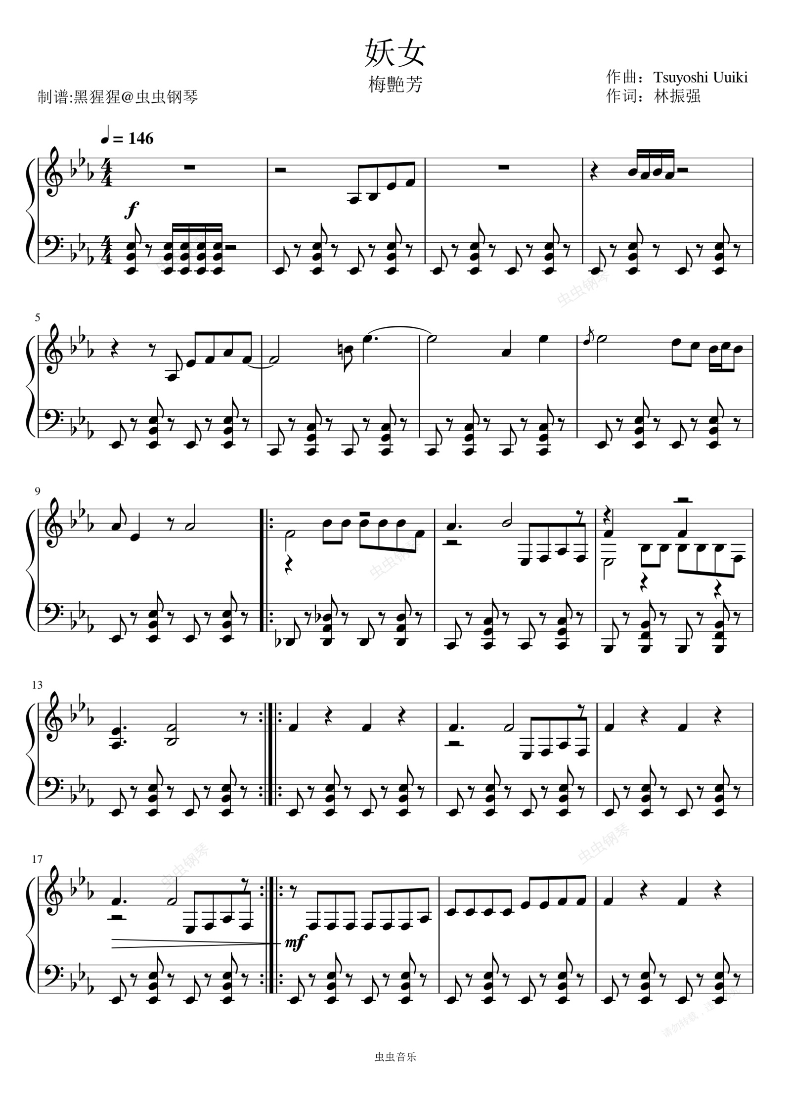 钢琴谱:梅艳芳-Eb调 《妖女》