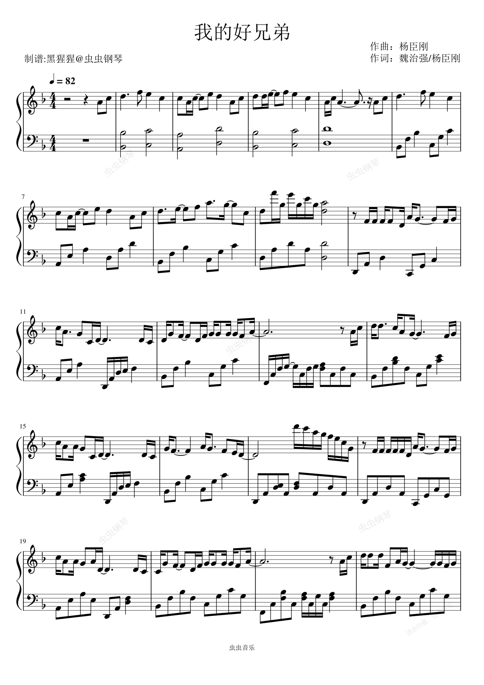 钢琴谱:阿旺-F调 《我的好兄弟》