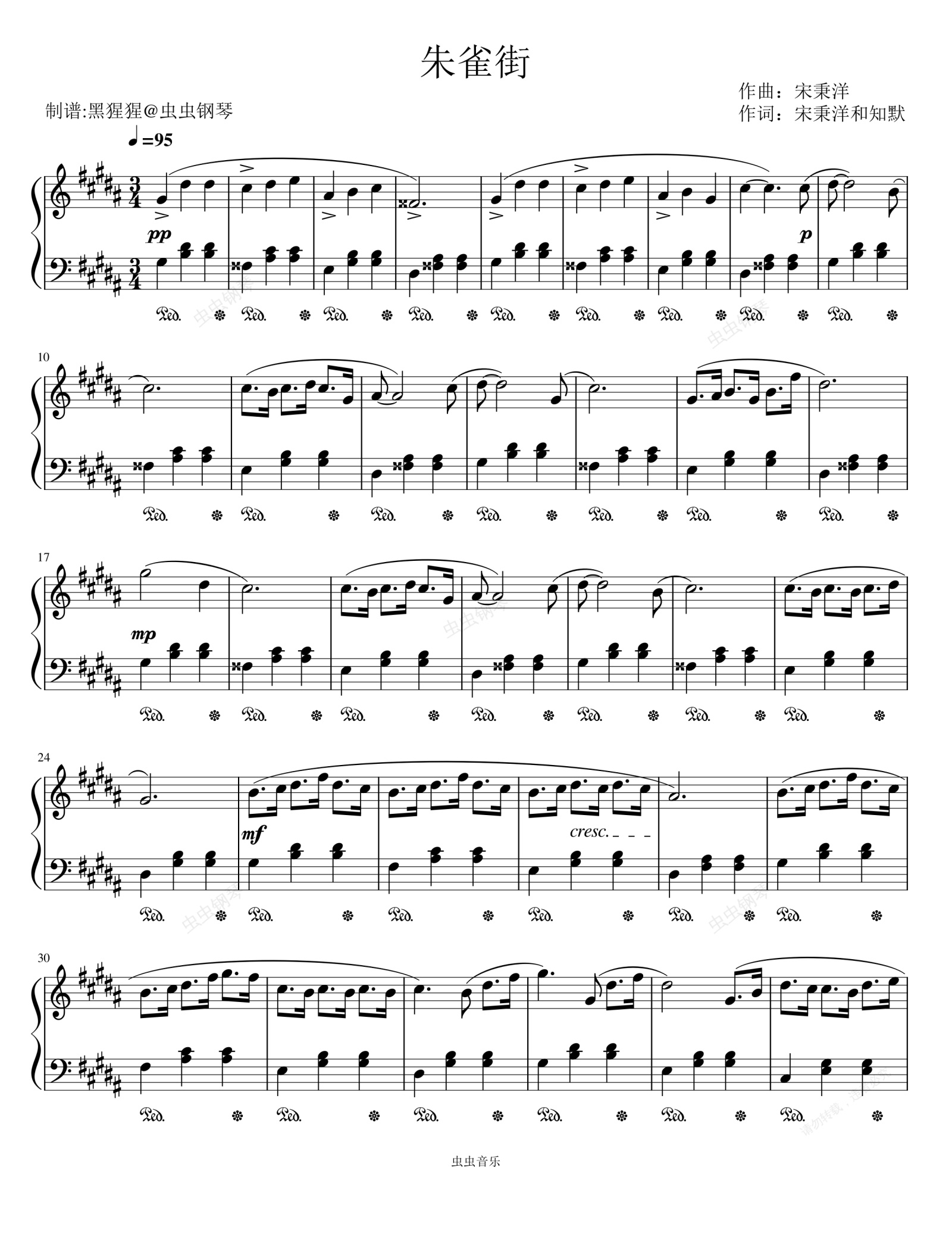 钢琴谱:宋秉洋-B调 《朱雀街》