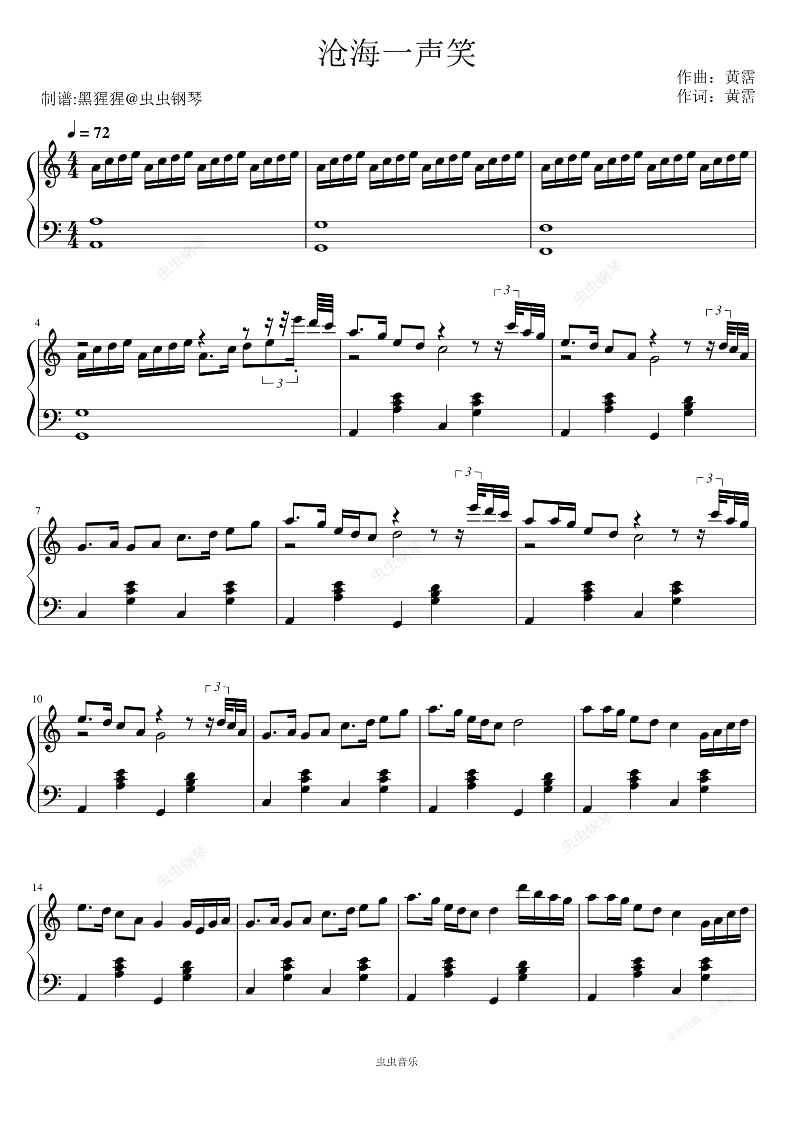 钢琴谱:许冠杰-C调 《沧海一声笑》