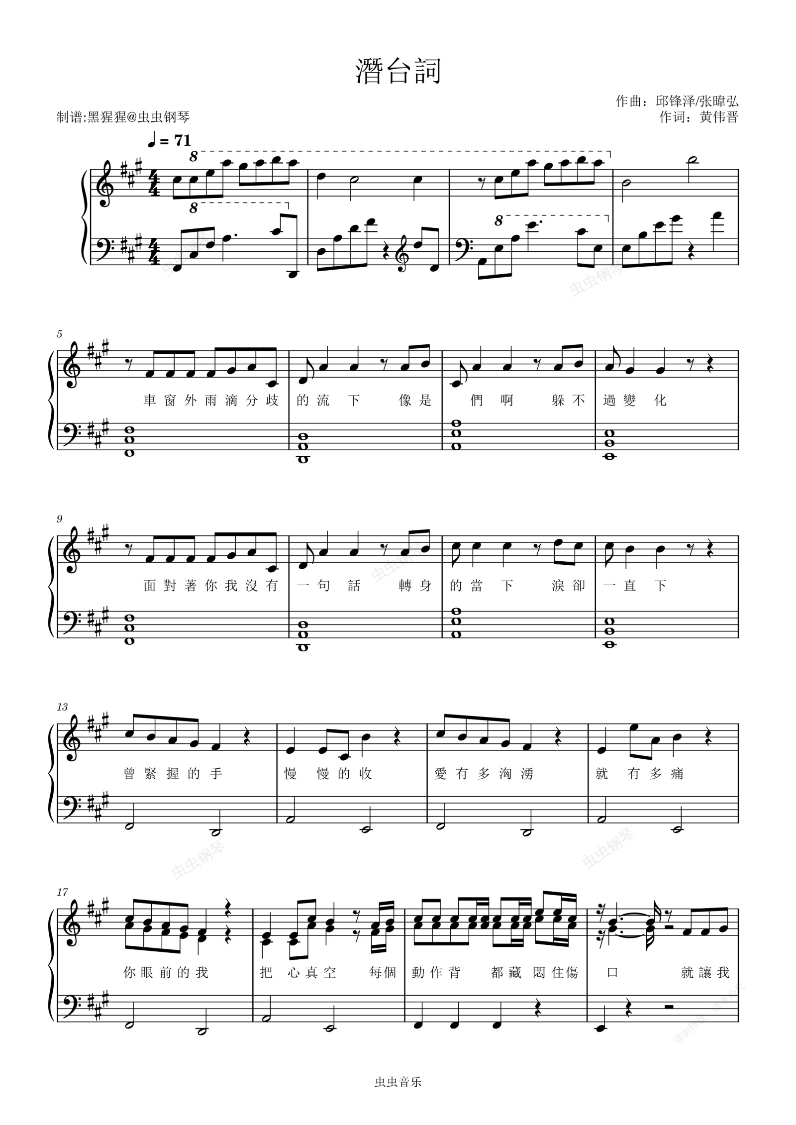 钢琴谱:邱锋泽/黄伟晋-A调 《潜台词》