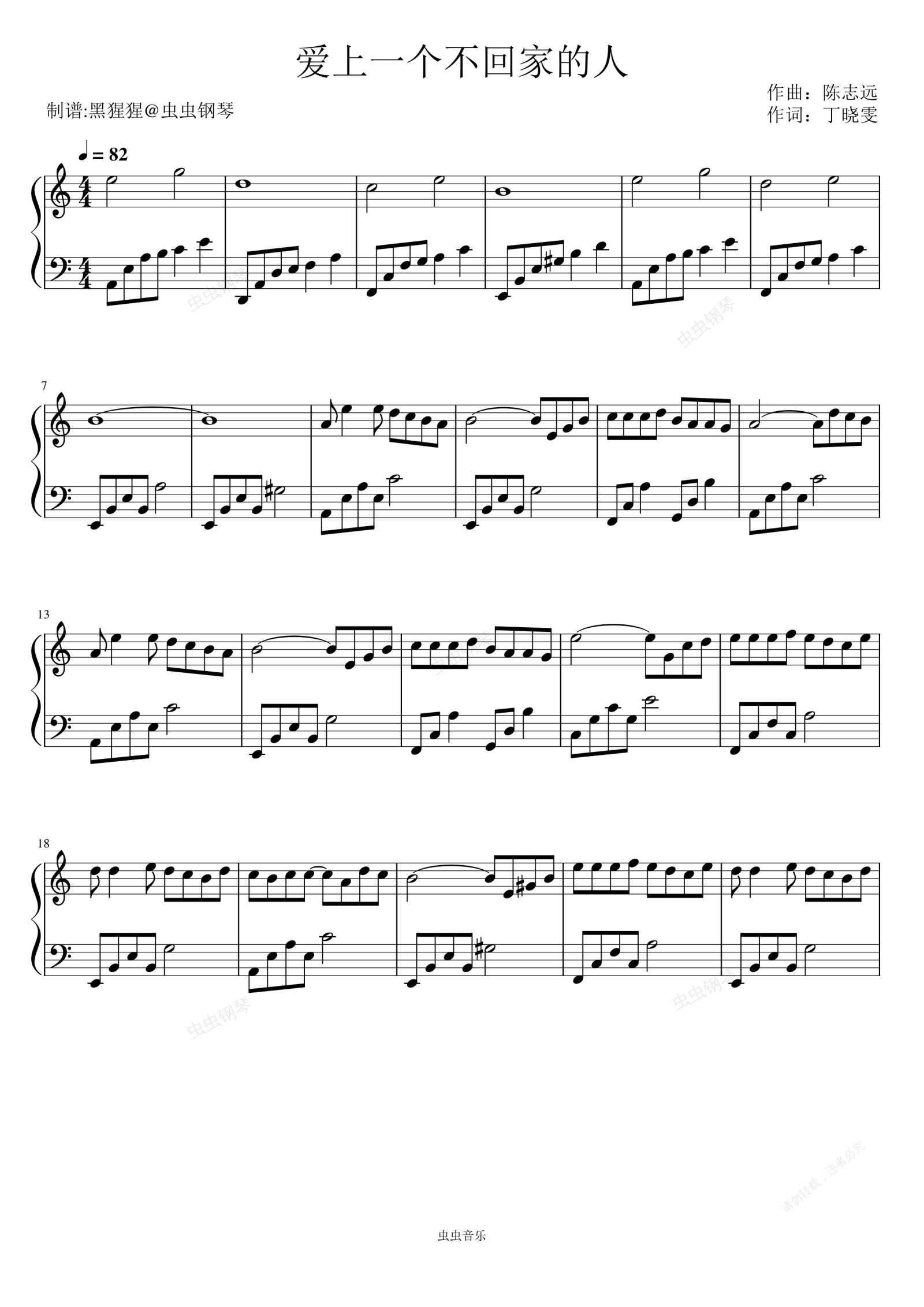 钢琴谱:林忆莲-C调 《爱上一个不回家的人》