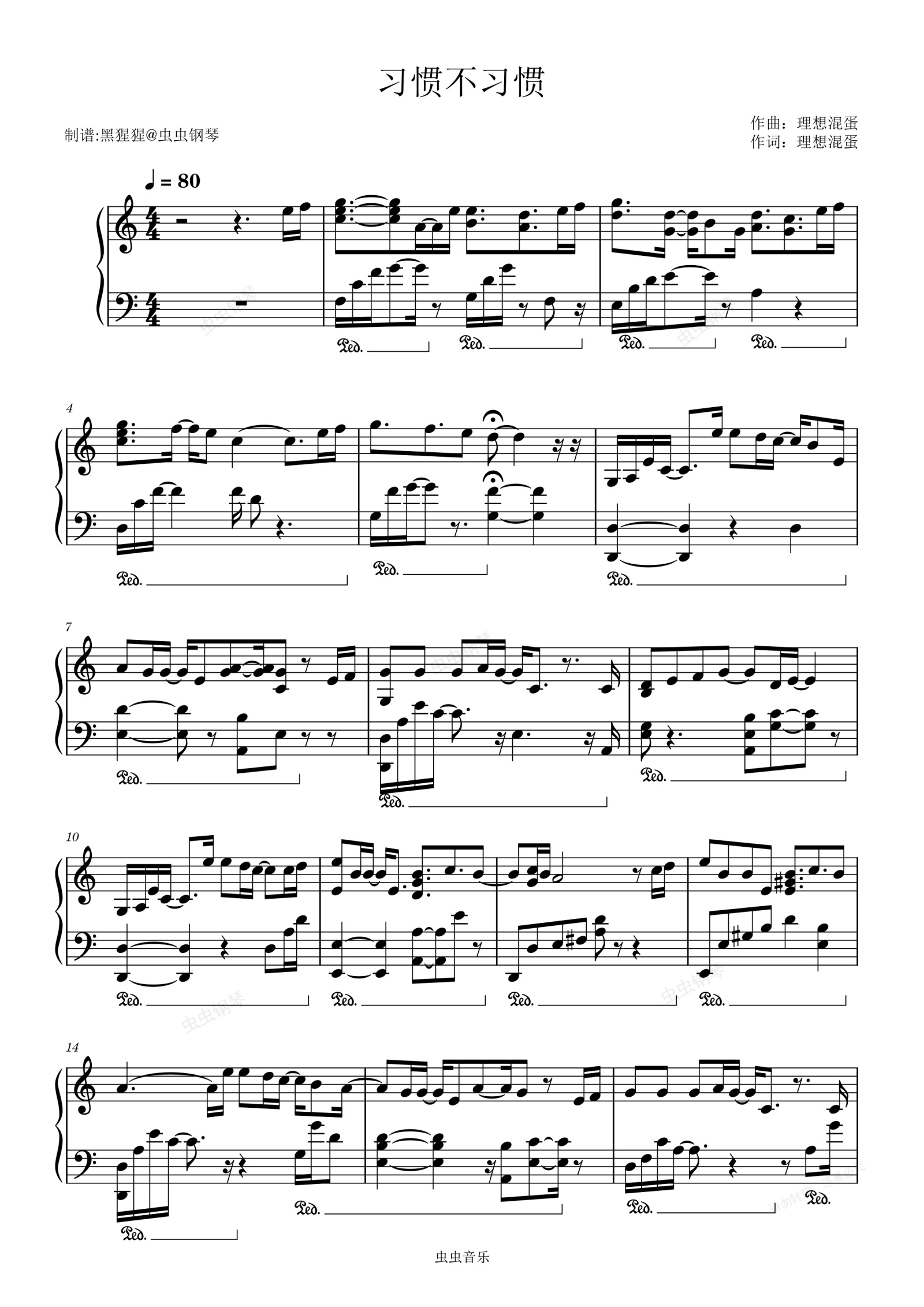 钢琴谱:理想混蛋-C调 《习惯不习惯》