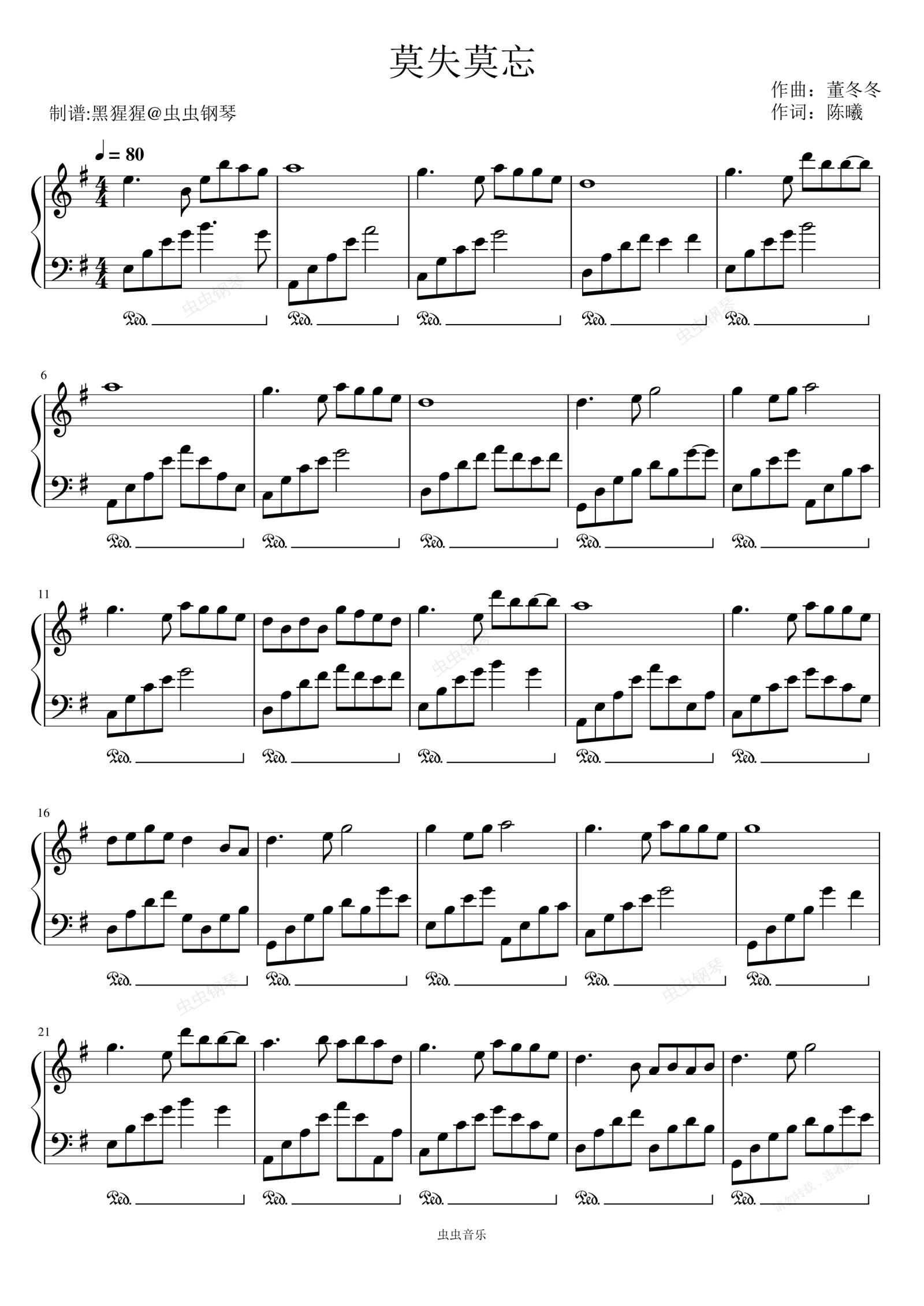 钢琴谱:郑云龙-G调 《莫失莫忘》