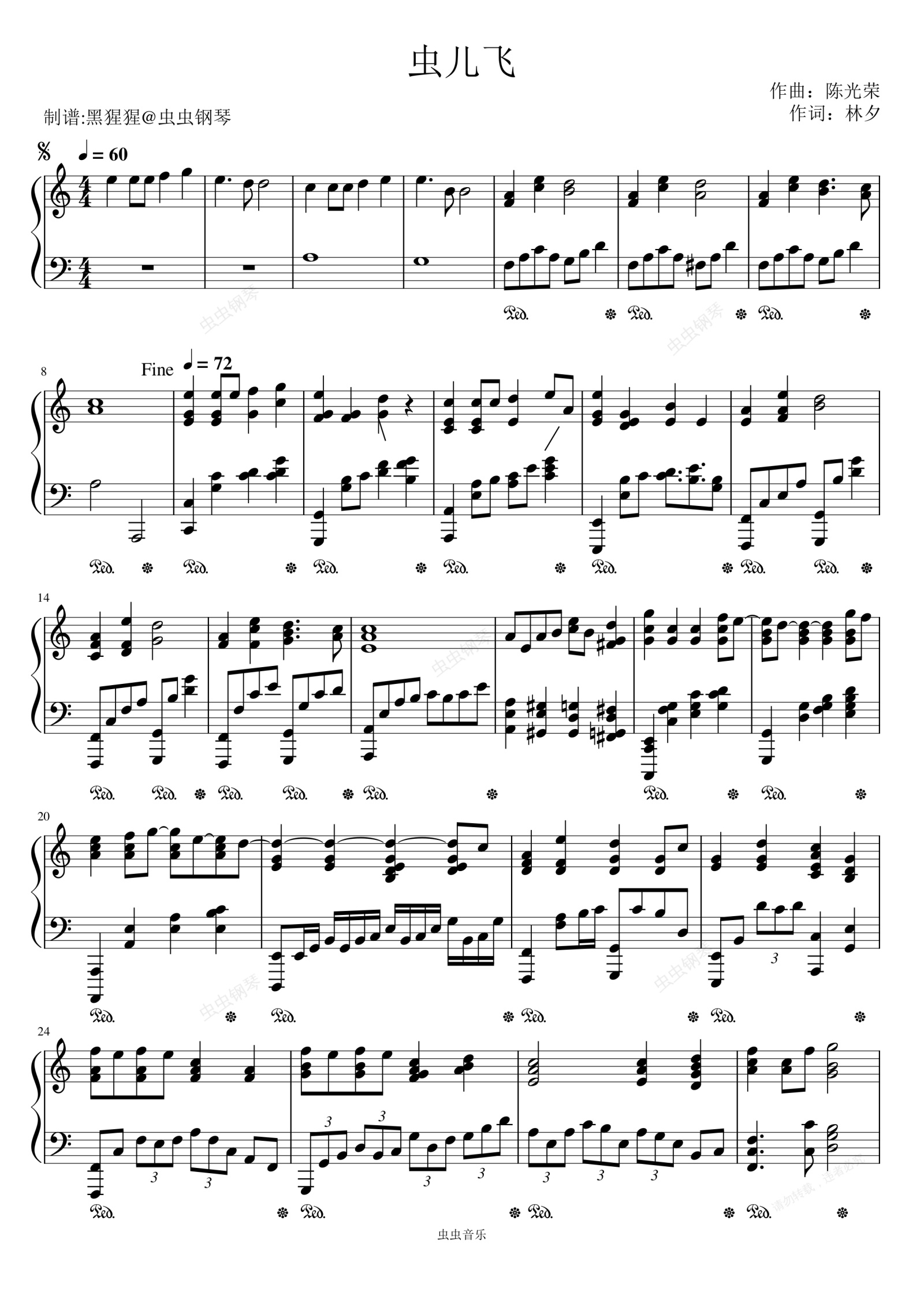 钢琴谱:郑伊健-C调 《虫儿飞》