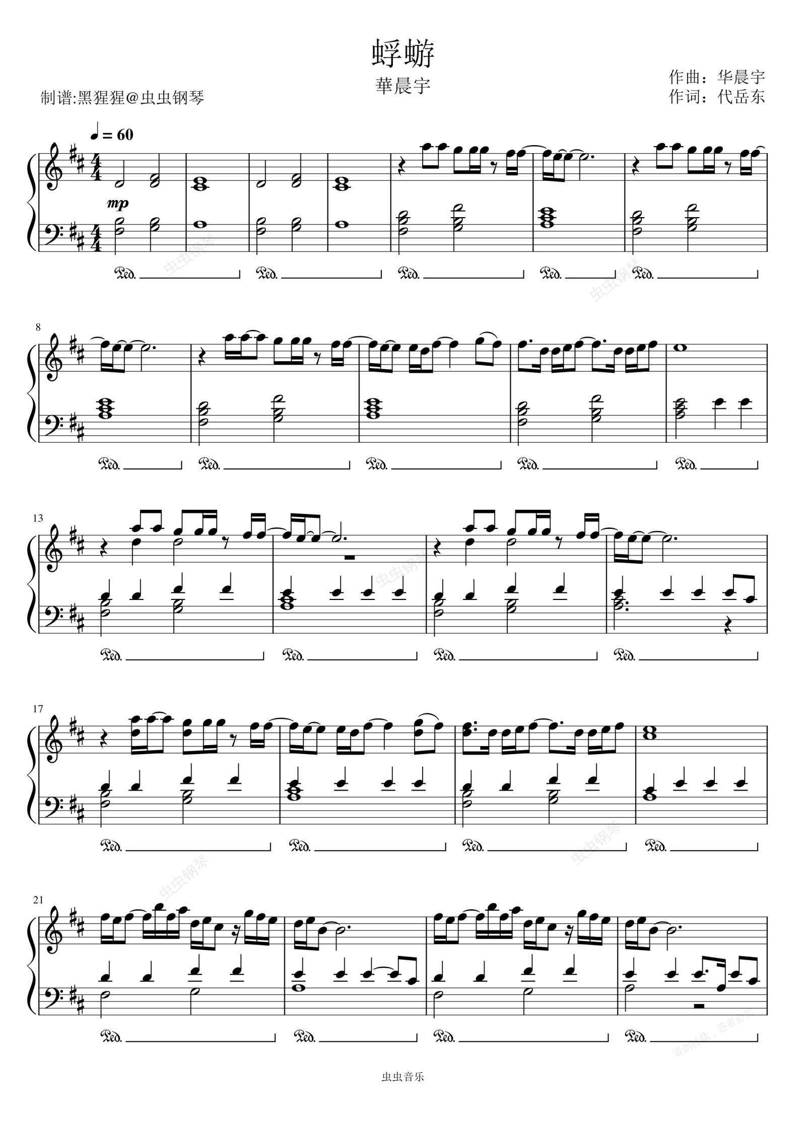 钢琴谱:华晨宇-D调 《蜉蝣》