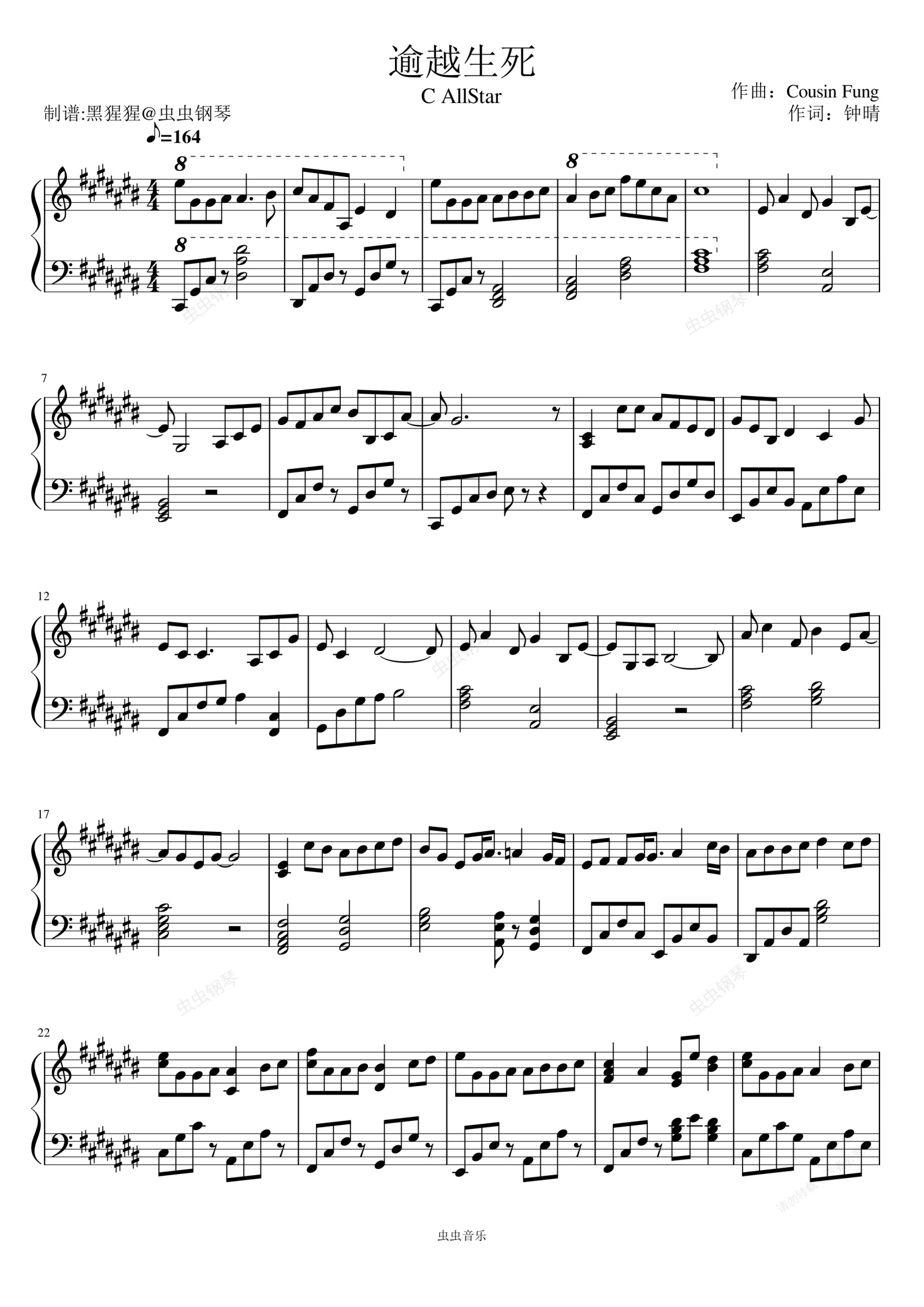 钢琴谱:C AllStar-Db调 《逾越生死》