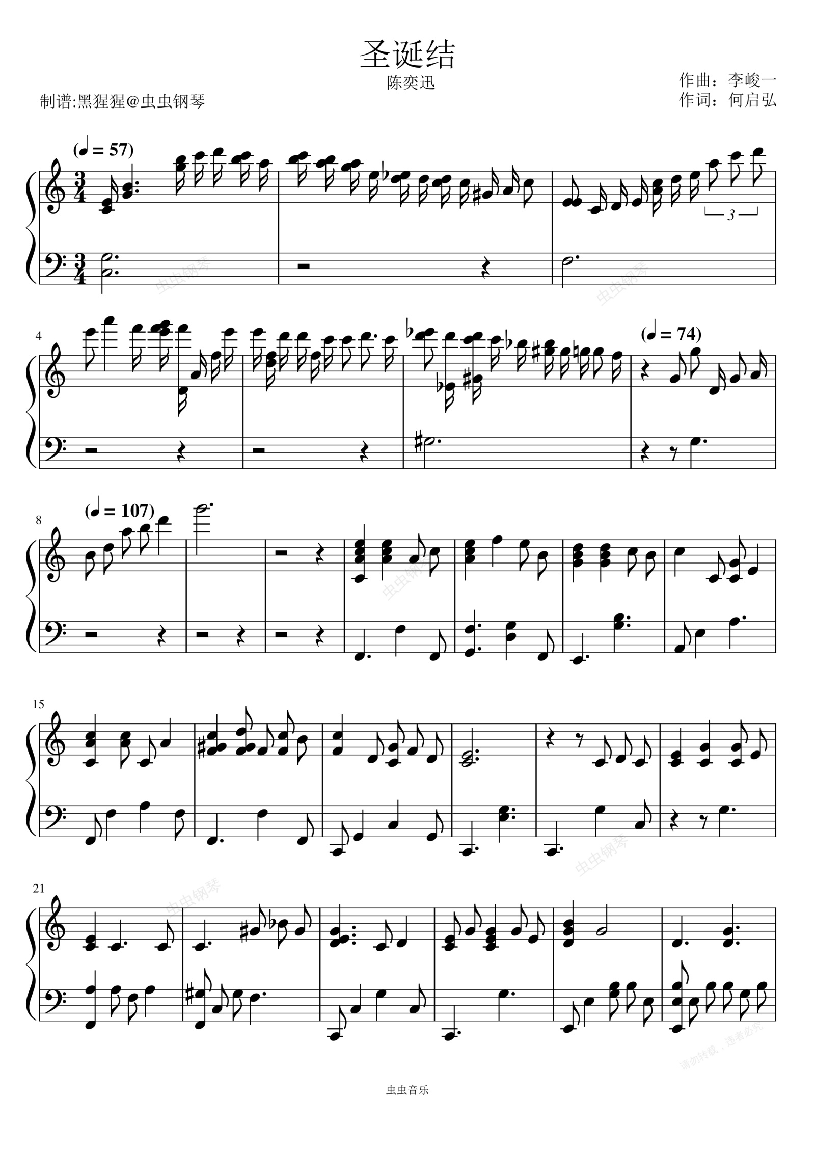 钢琴谱:陈奕迅-C调 《圣诞结》