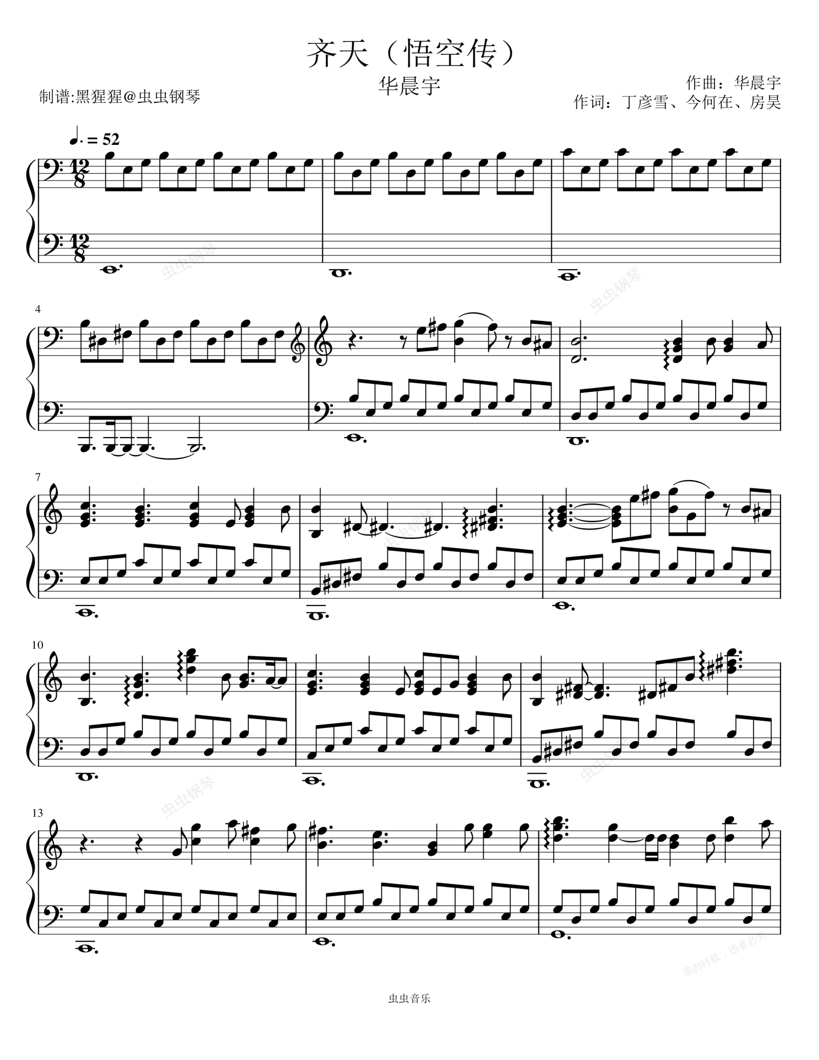 钢琴谱:华晨宇-C调 《齐天(悟空传)》
