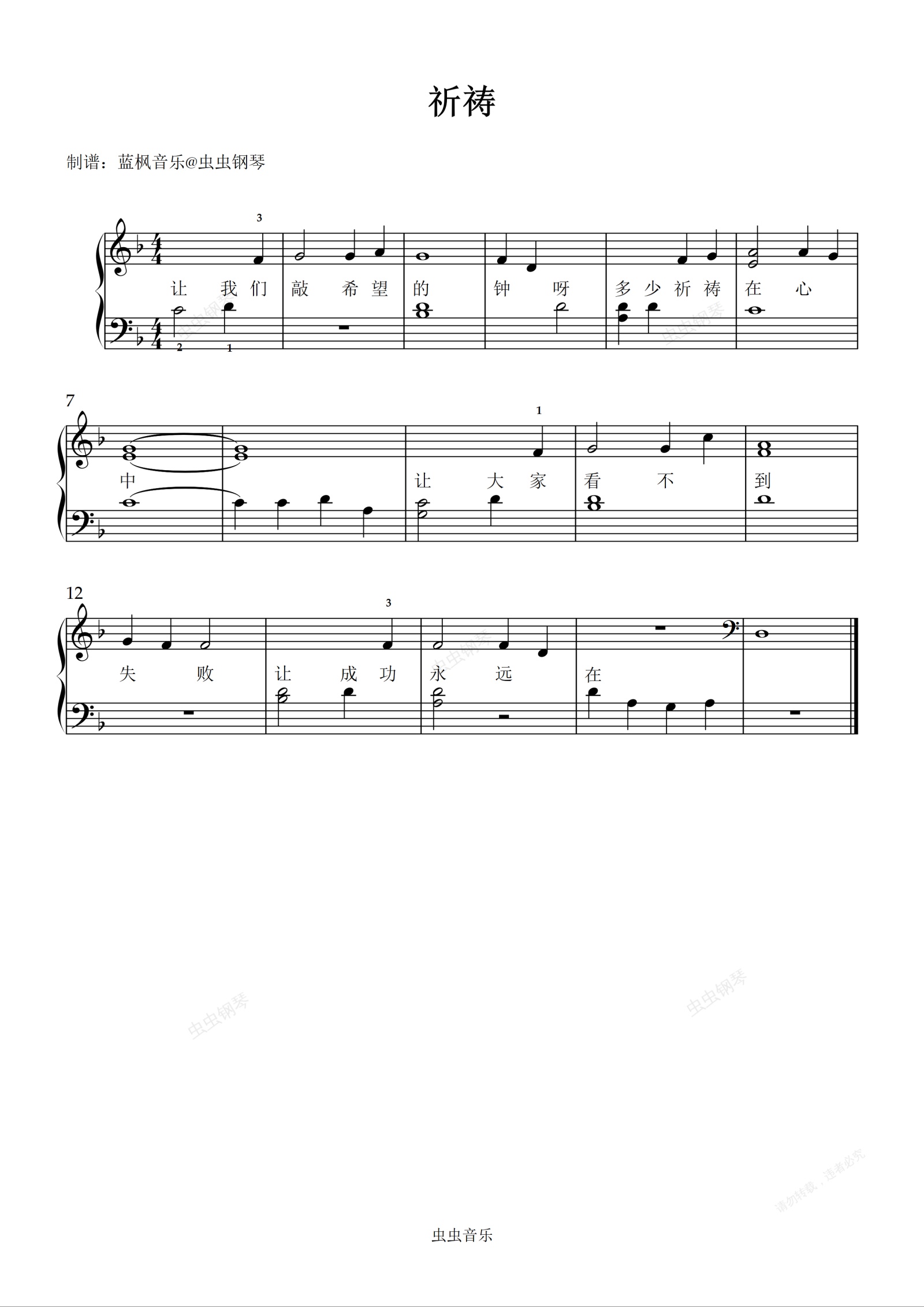 钢琴谱:祈祷
