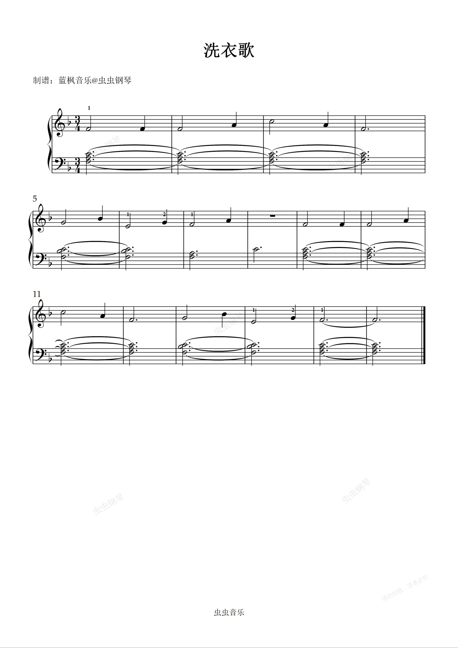 钢琴谱:洗衣歌