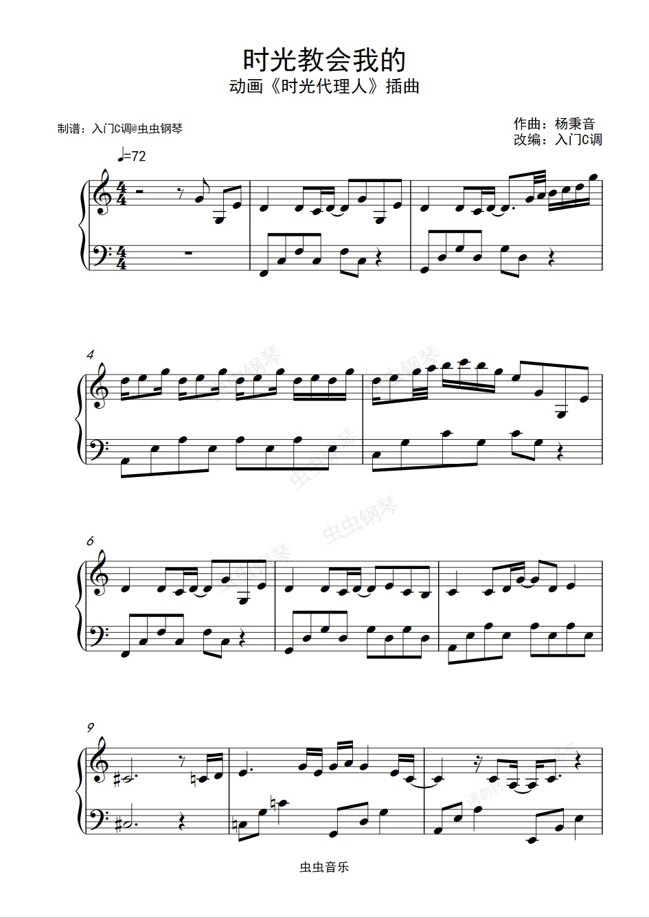 钢琴谱:邹俊健《时光教会我的》(动画《时光代理人》插曲)入门C调简单版