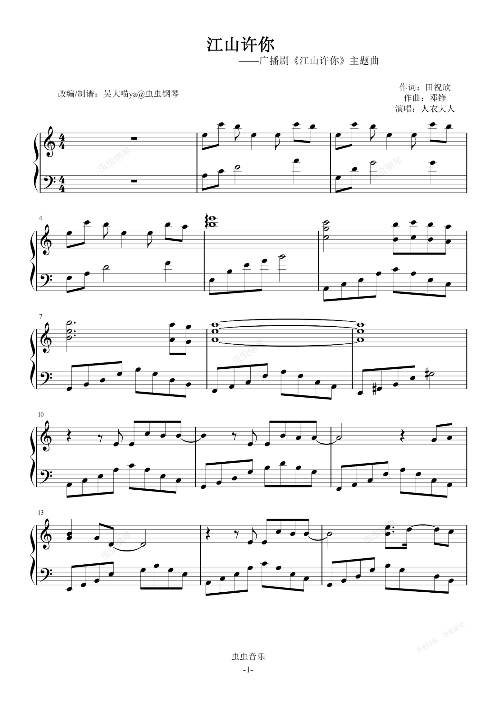 钢琴谱:《江山许你》—广播剧《江山许你》主题曲