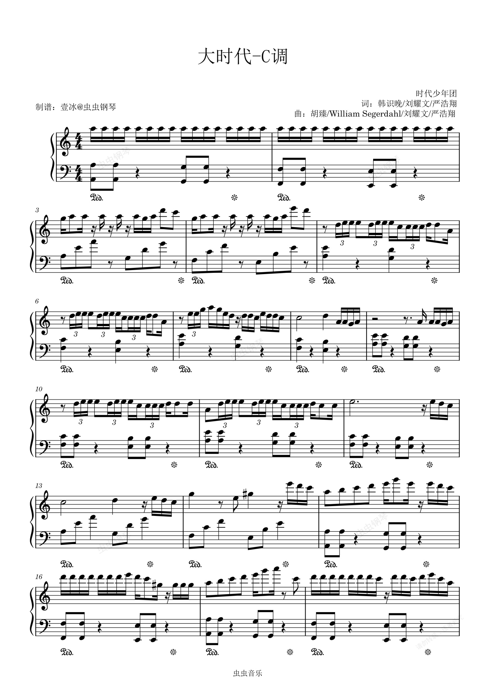 钢琴谱:大时代//时代少年团 - C调 简单易上手