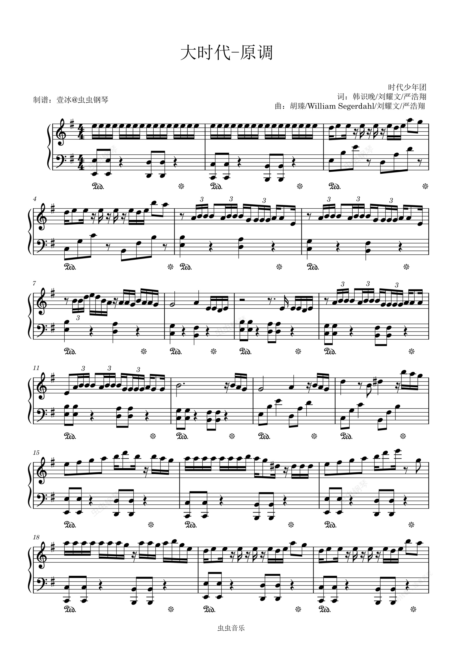 钢琴谱:大时代//时代少年团 - 原调 简单易上手