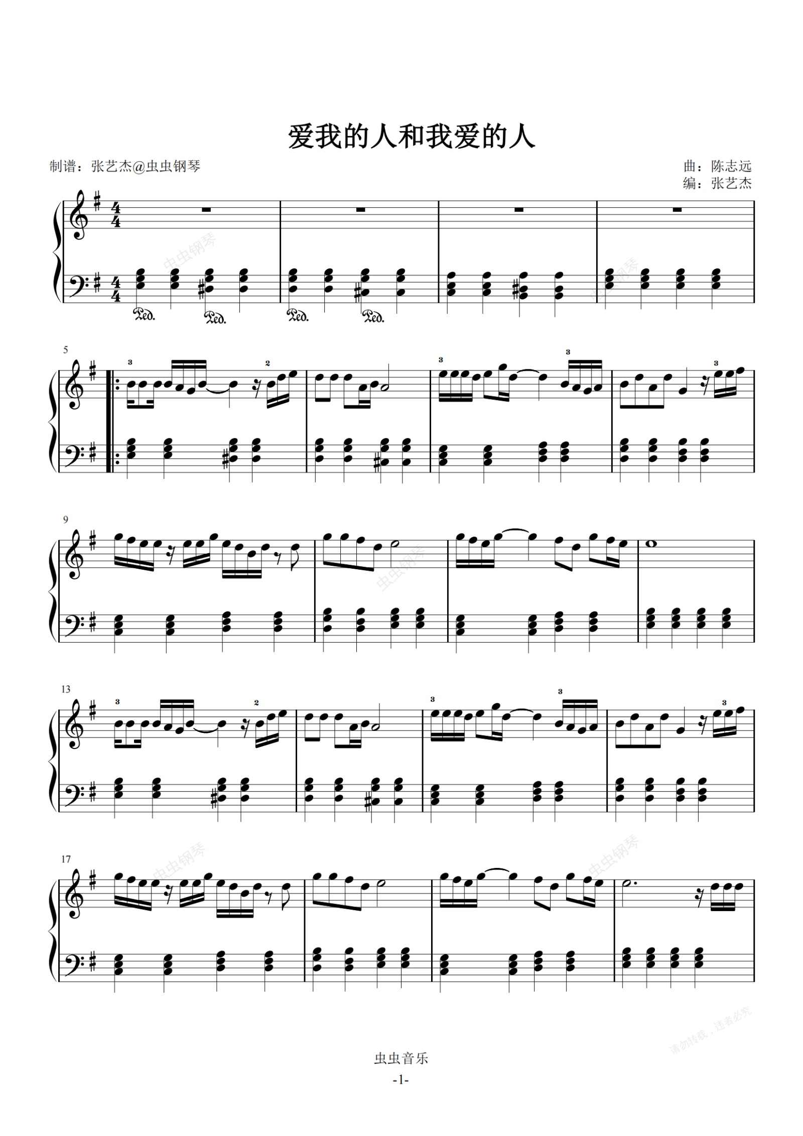 钢琴谱:爱我的人和我爱的人 -裘海正