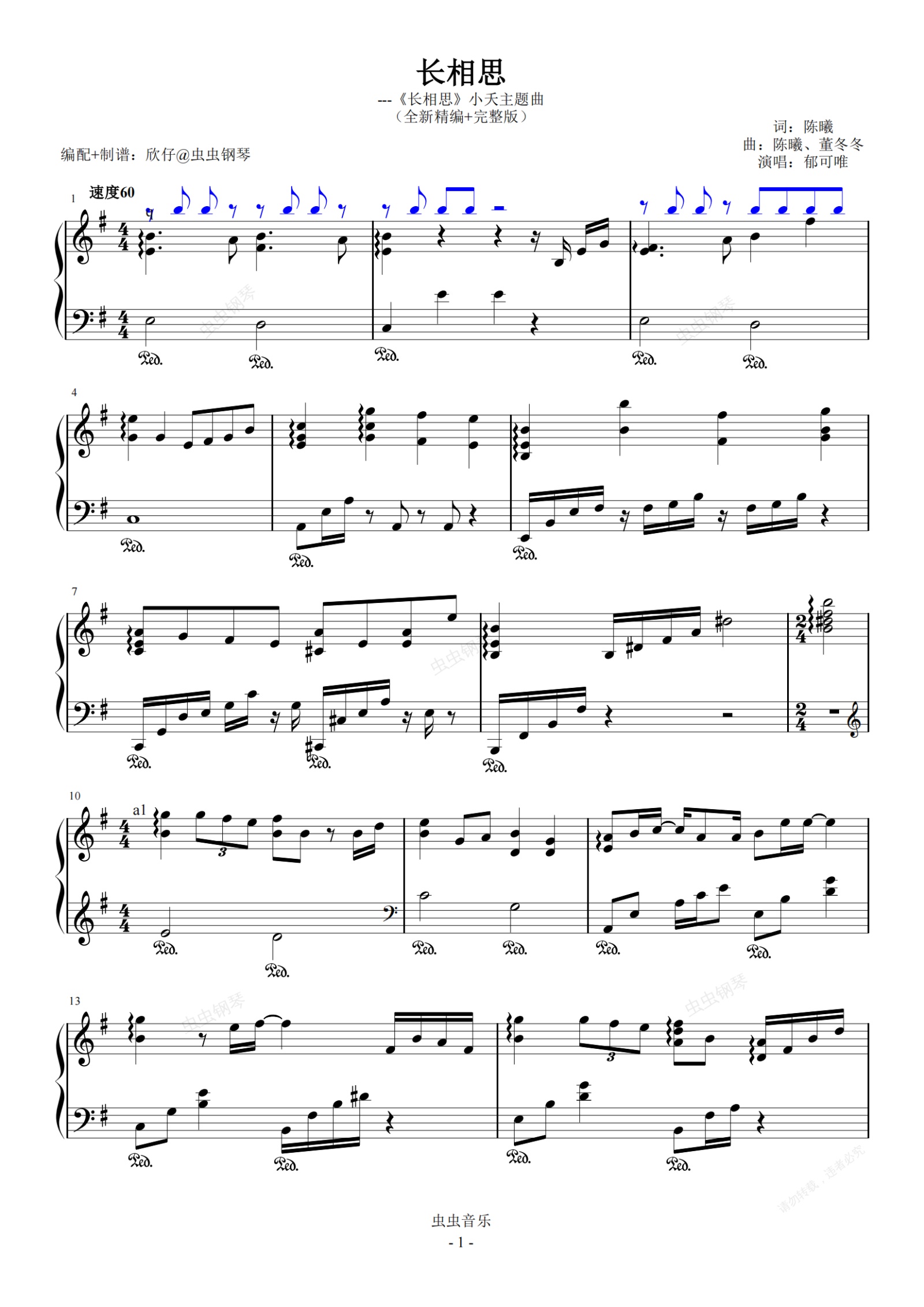 钢琴谱:郁可唯-e《长相思》(《长相思》小夭主题曲、完整版)