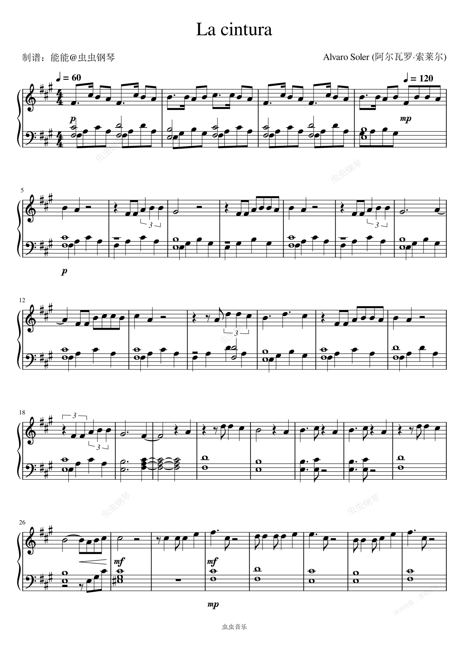 钢琴谱:La Cintura - Alvaro Soler (阿尔瓦罗·索莱尔)
