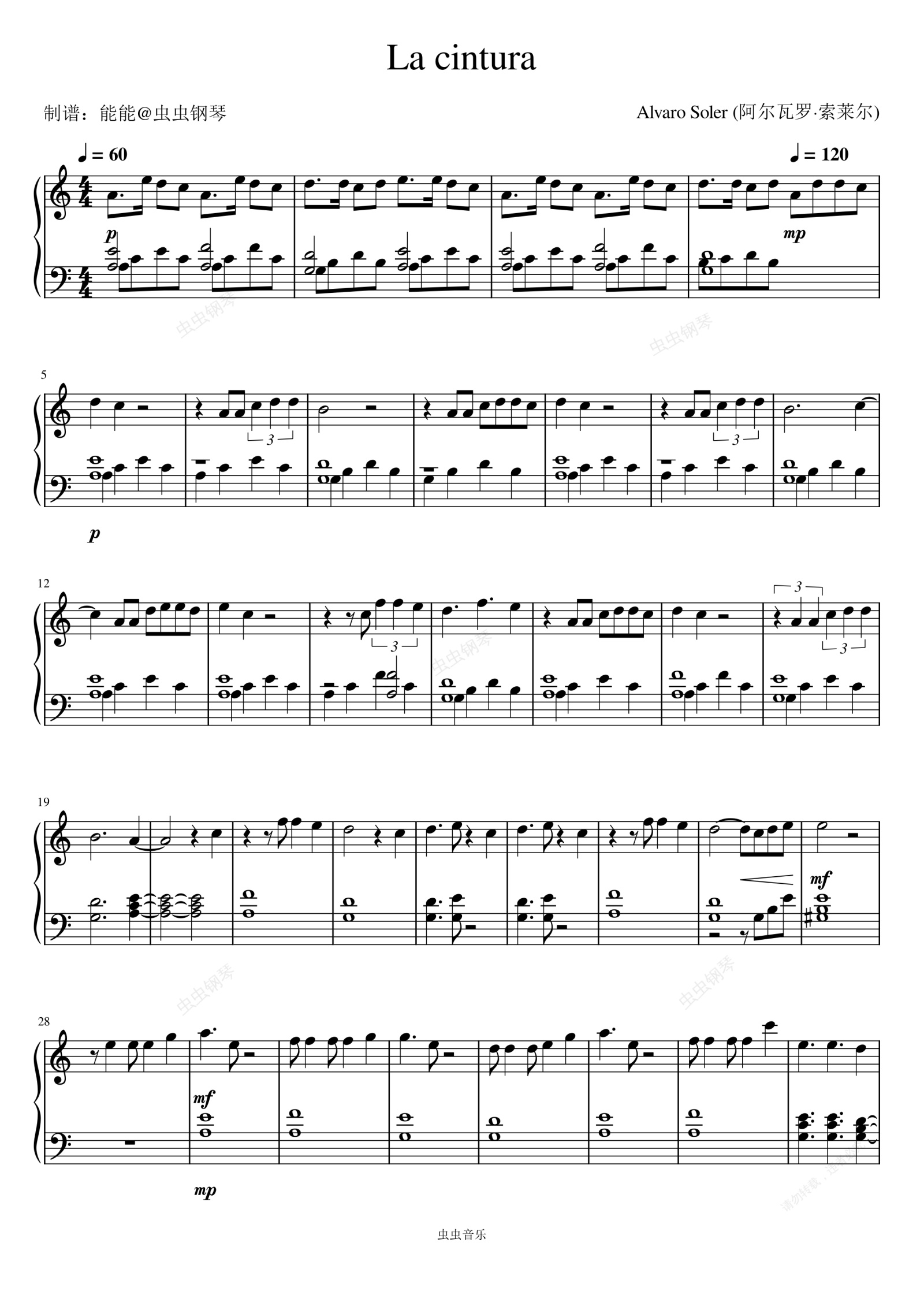 钢琴谱:La Cintura - Alvaro Soler (阿尔瓦罗·索莱尔)