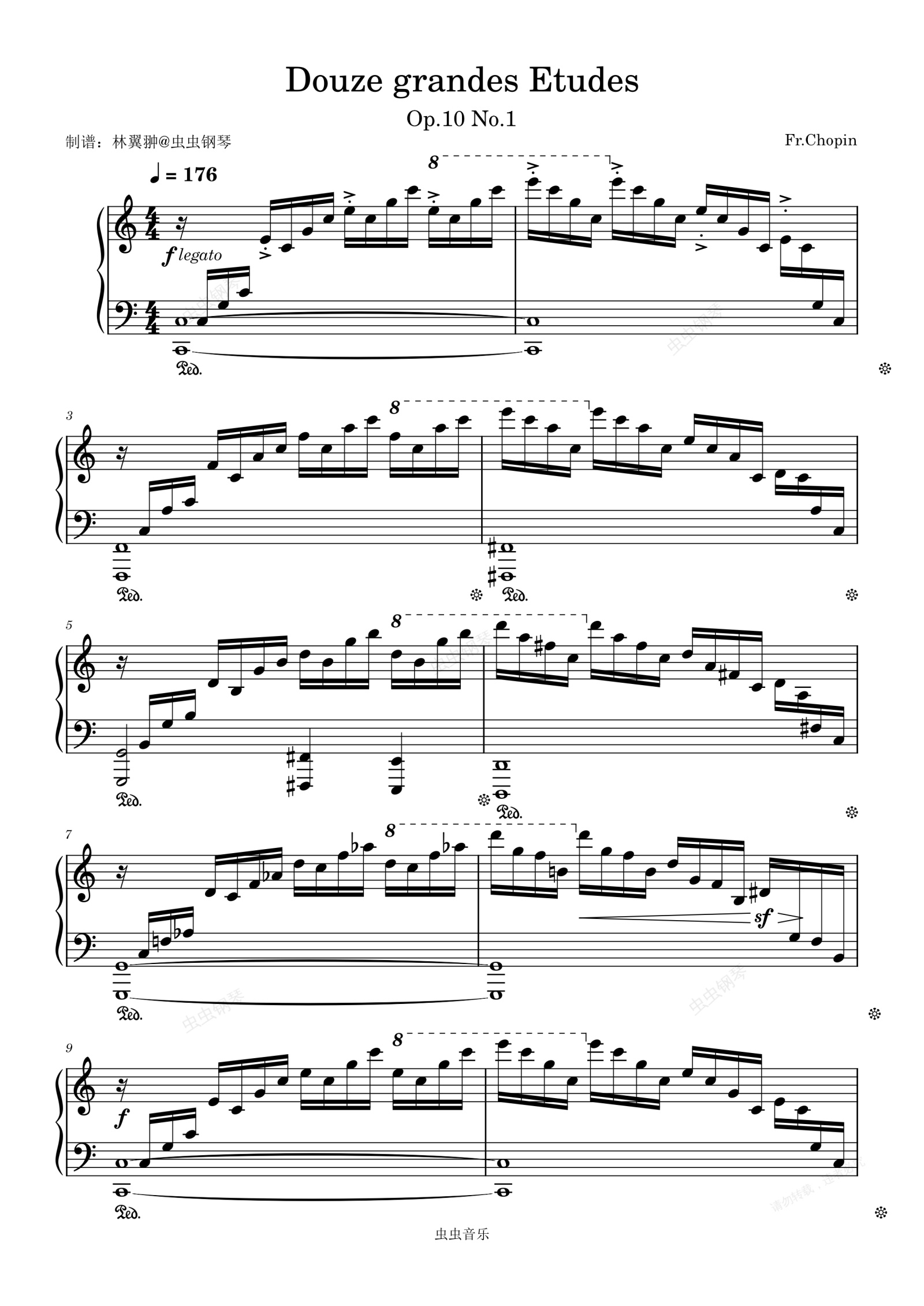 钢琴谱:肖邦 C大调 Op.10 No.1 逃亡圣咏(瀑布)练习曲