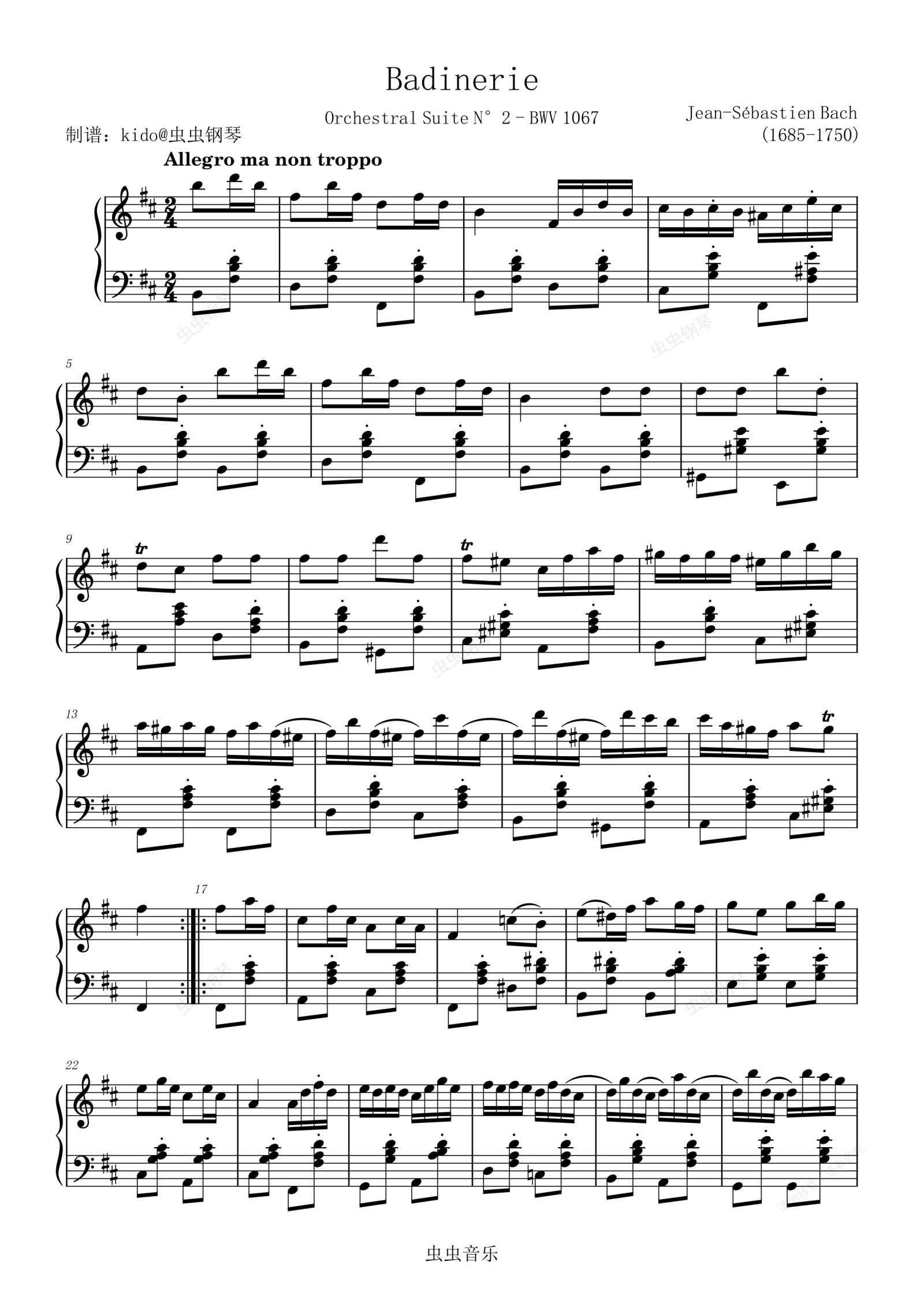 钢琴谱:Badinerie 谐谑曲 J.S.巴赫
