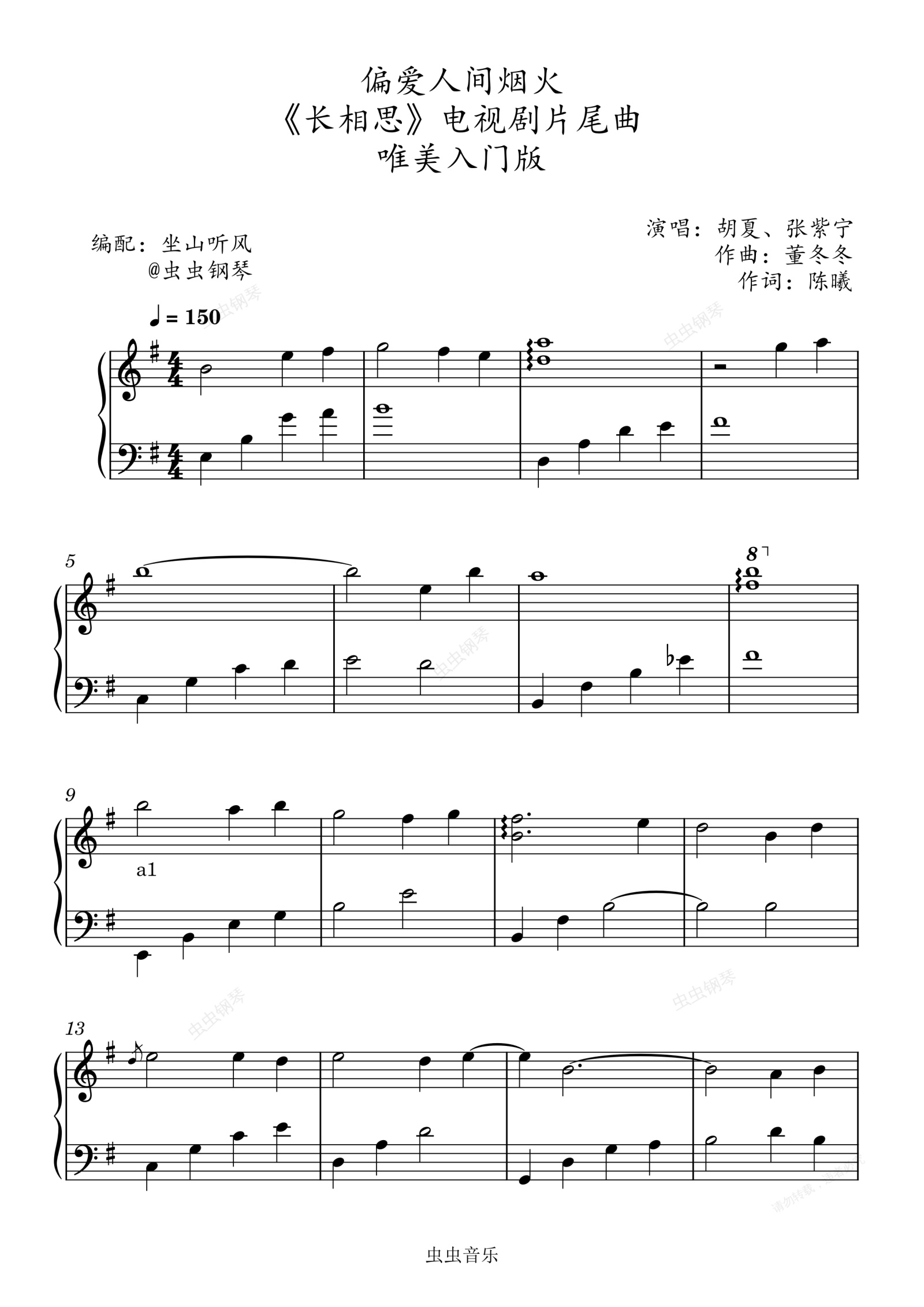 钢琴谱:偏爱人间烟火——《长相思》电视剧片尾曲 唯美入门版