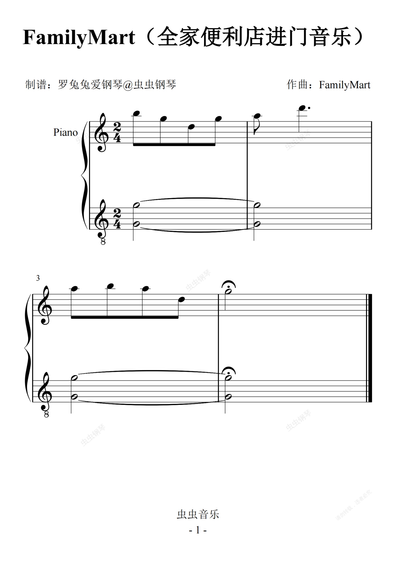钢琴谱:FamilyMart(全家便利店进门音乐)