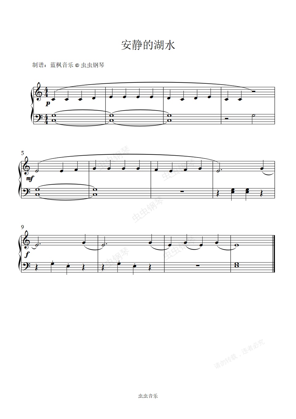 您的位置: 首页 > 钢琴谱库 > 安静的湖水钢琴谱-佚名