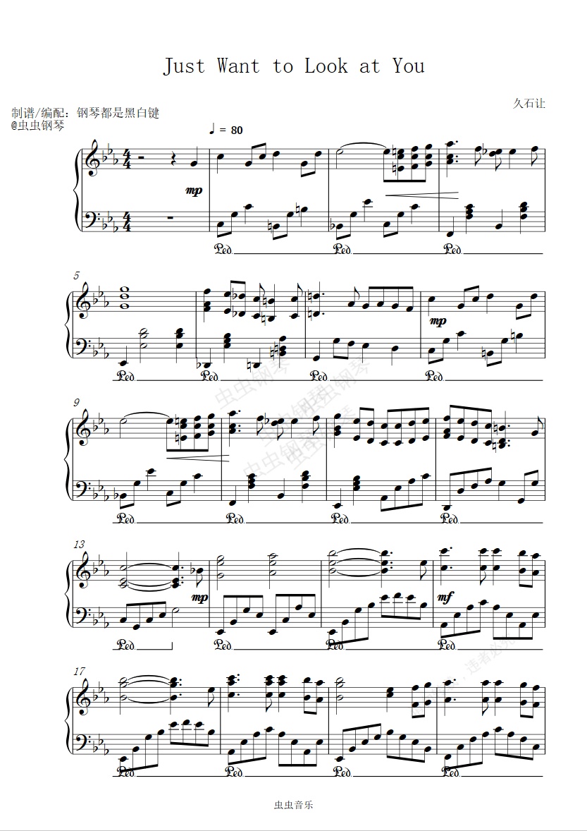 钢琴谱:Just_Want_To_Look_At_You - 久石让 【钢琴轻音乐 | 舒缓音乐】