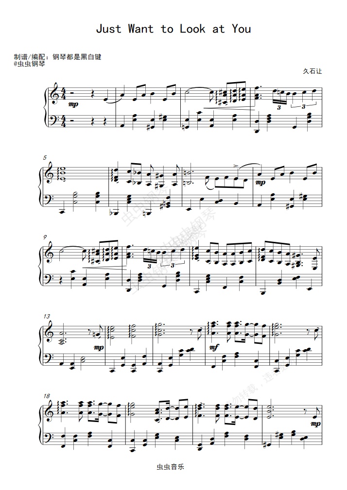 钢琴谱:Just_Want_To_Look_At_You - 久石让 【钢琴轻音乐 | 舒缓音乐】