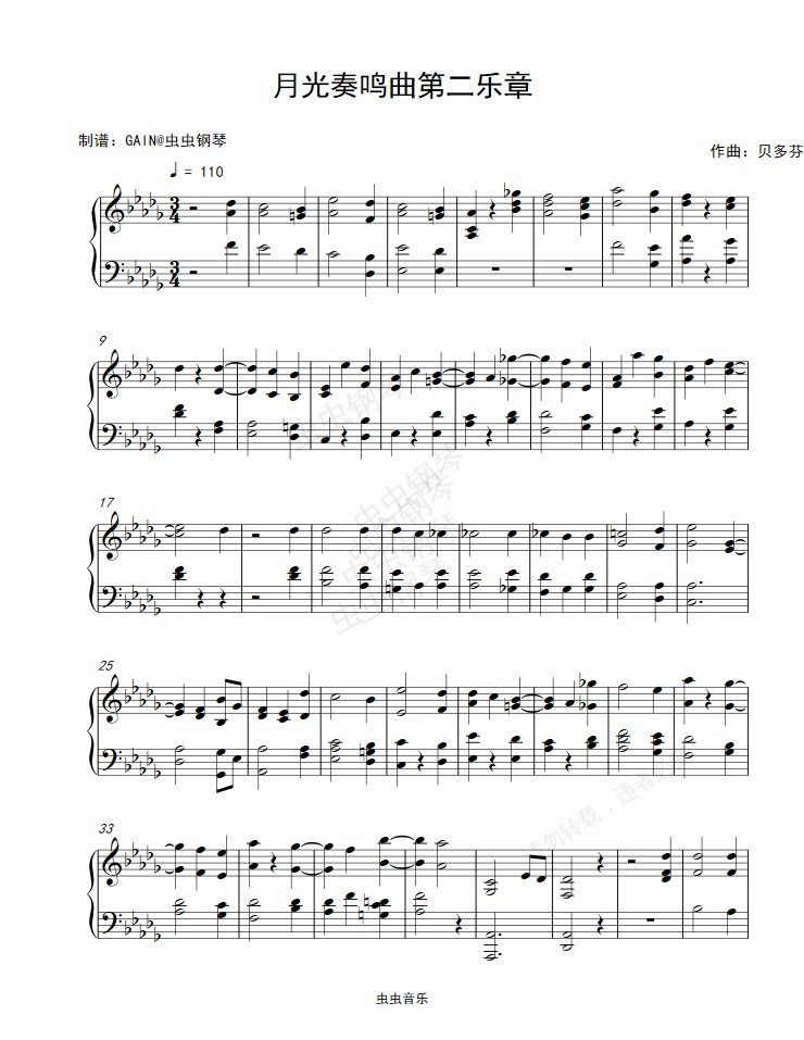 钢琴谱:月光奏鸣曲第二乐章-贝多芬