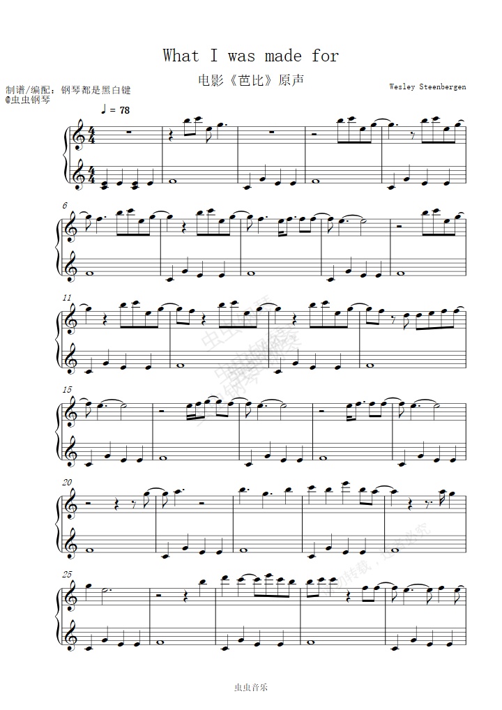 钢琴谱:What Was I Made For 电影《芭比》原声 【初学版】