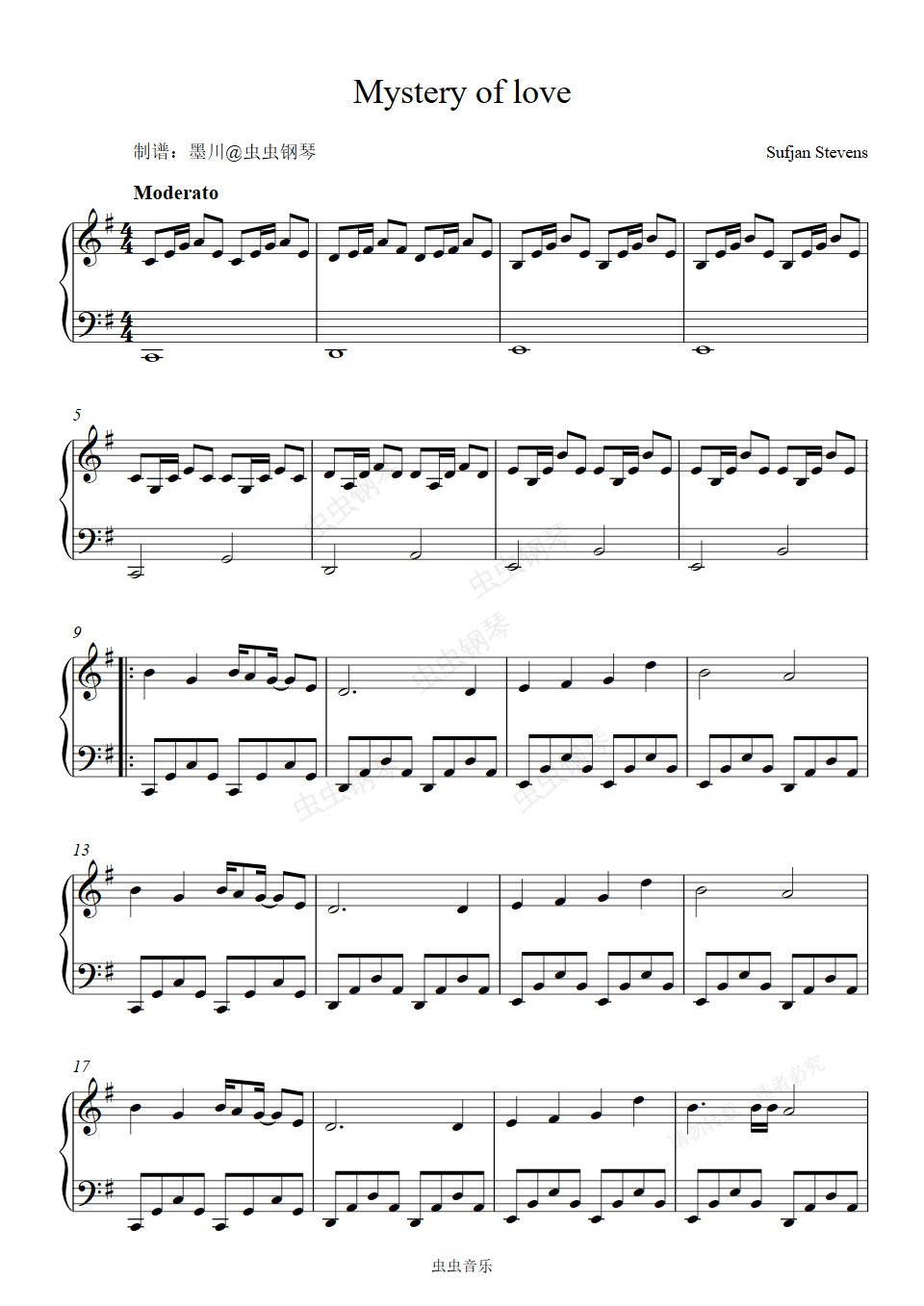 钢琴谱:Mystery of love—Sufjan Stevens