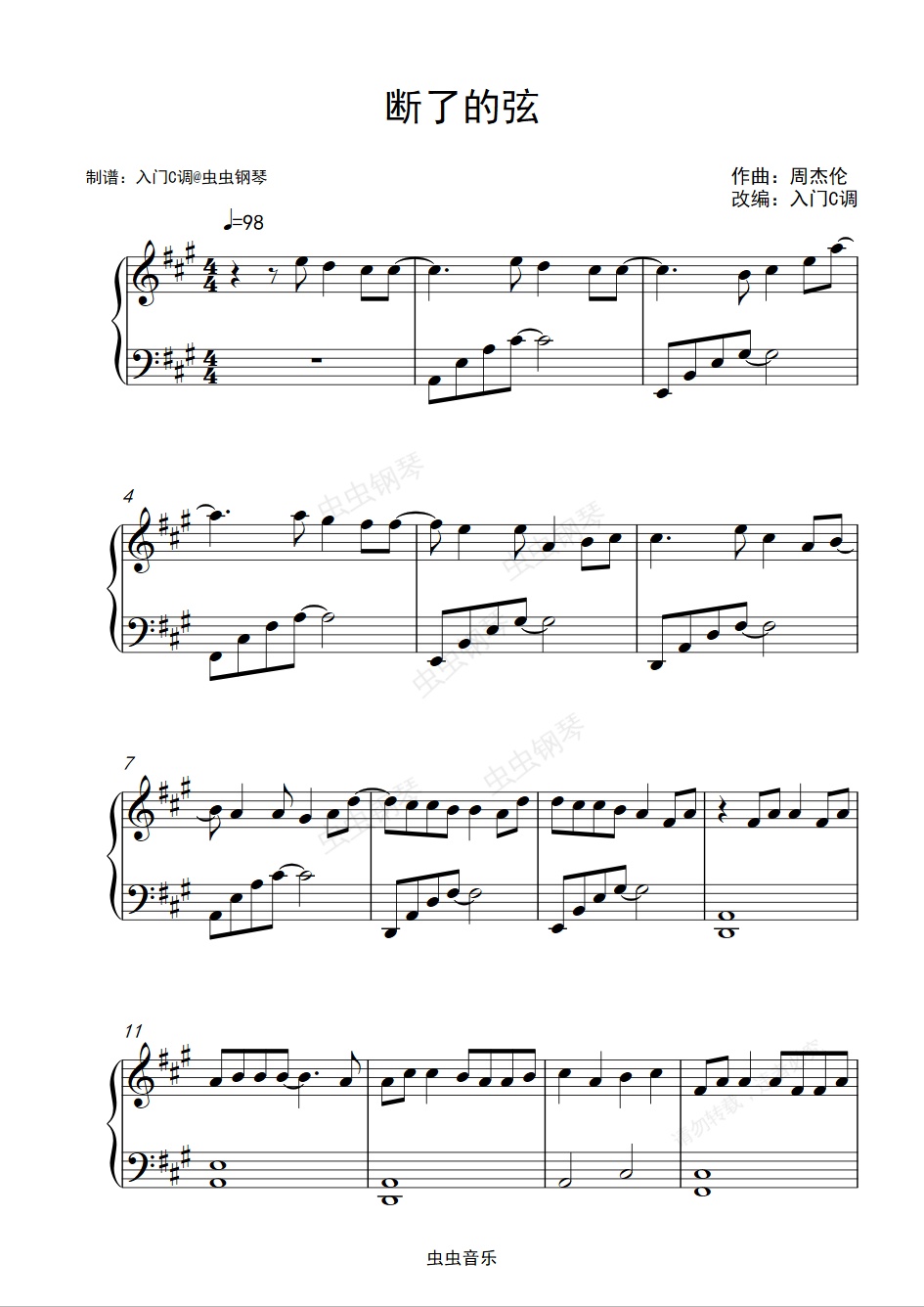 钢琴谱:【90后记忆】周杰伦《断了的弦》原调简单版