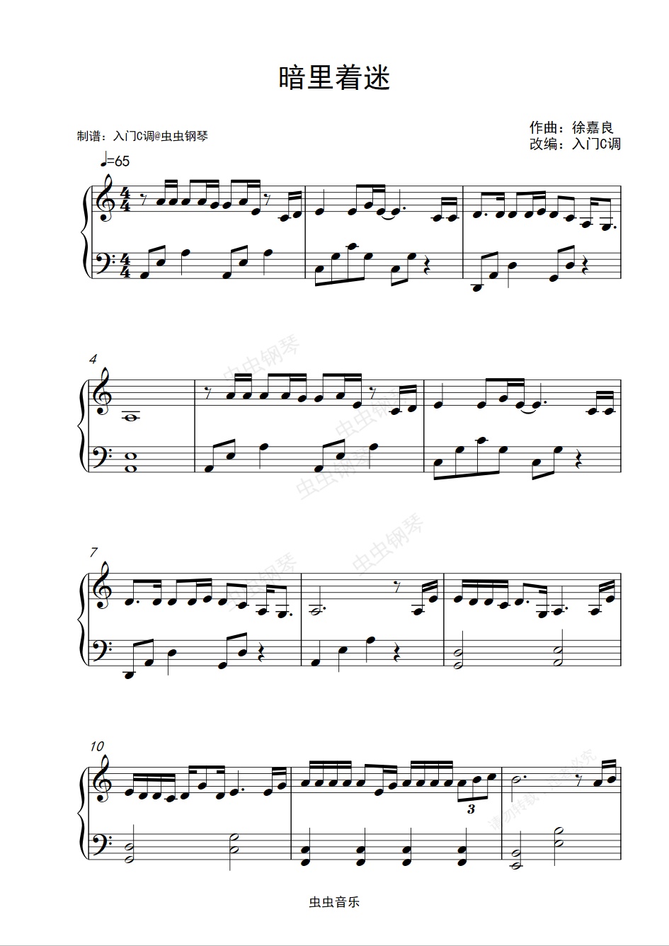钢琴谱:【经典老歌】刘德华《暗里着迷》入门C调简单版