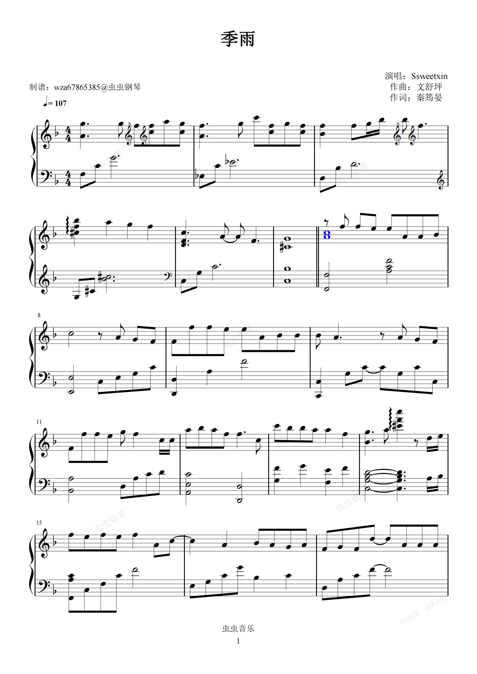 钢琴谱:季雨