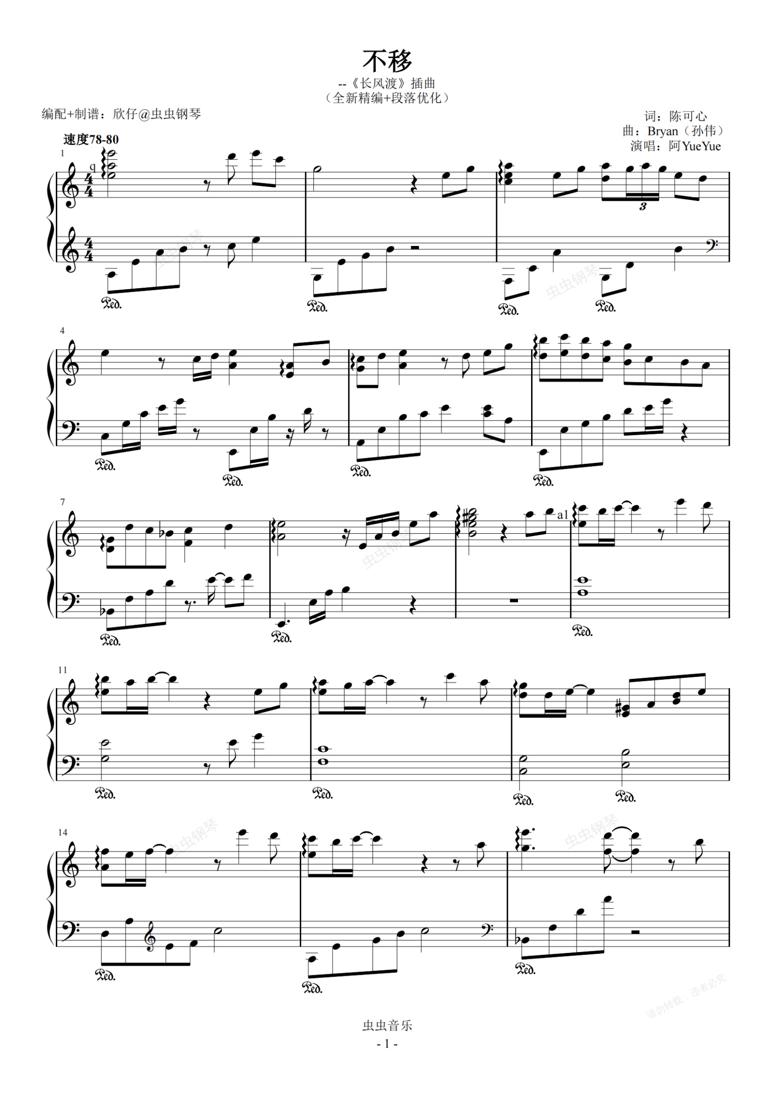 钢琴谱:阿YueYue-a《不移》(《长风渡》插曲、段落优化)