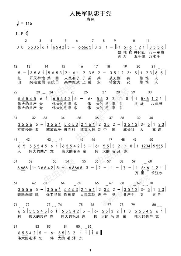 钢琴谱:人民军队忠于党