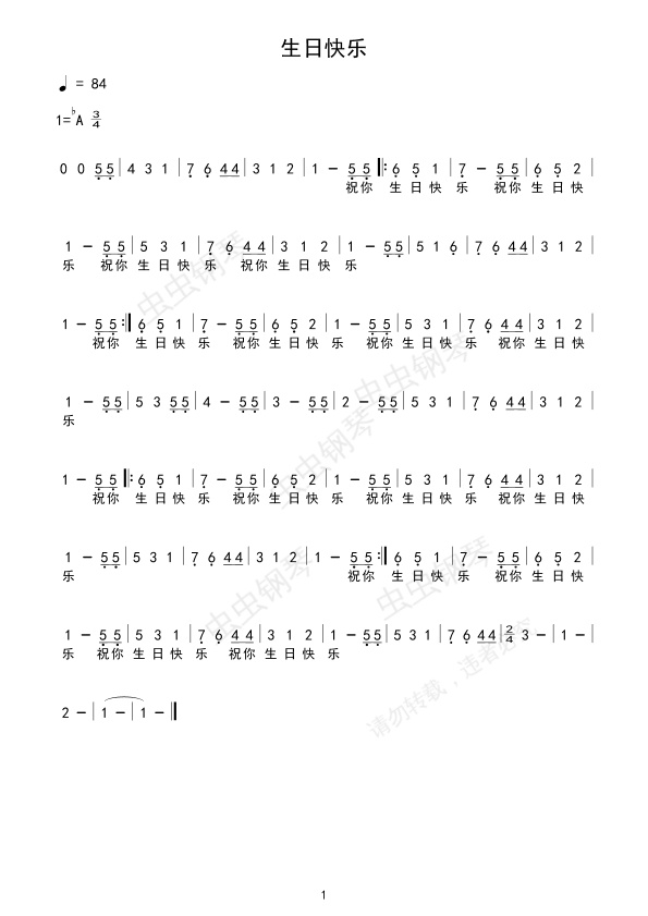 钢琴谱:生日快乐