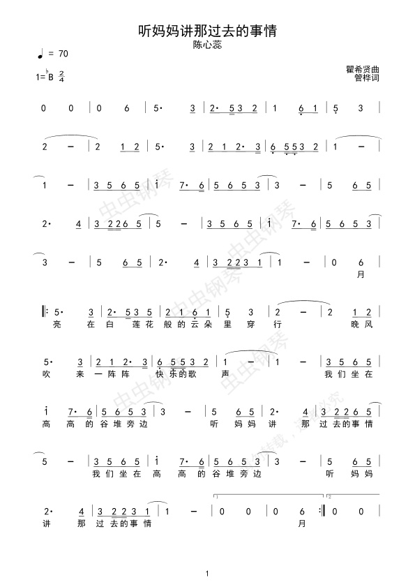 钢琴谱:听妈妈讲那过去的事情