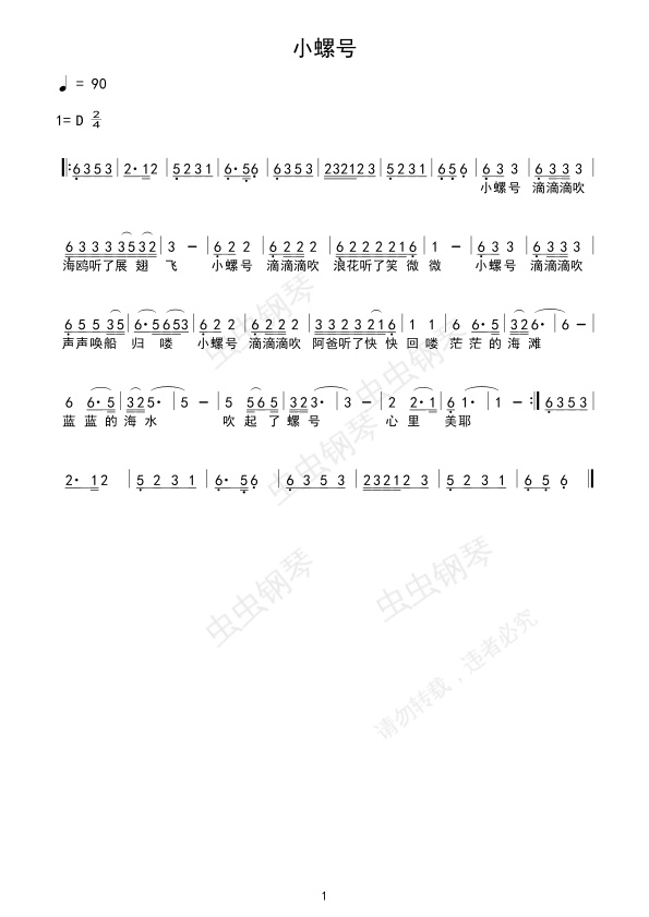 钢琴谱:小螺号