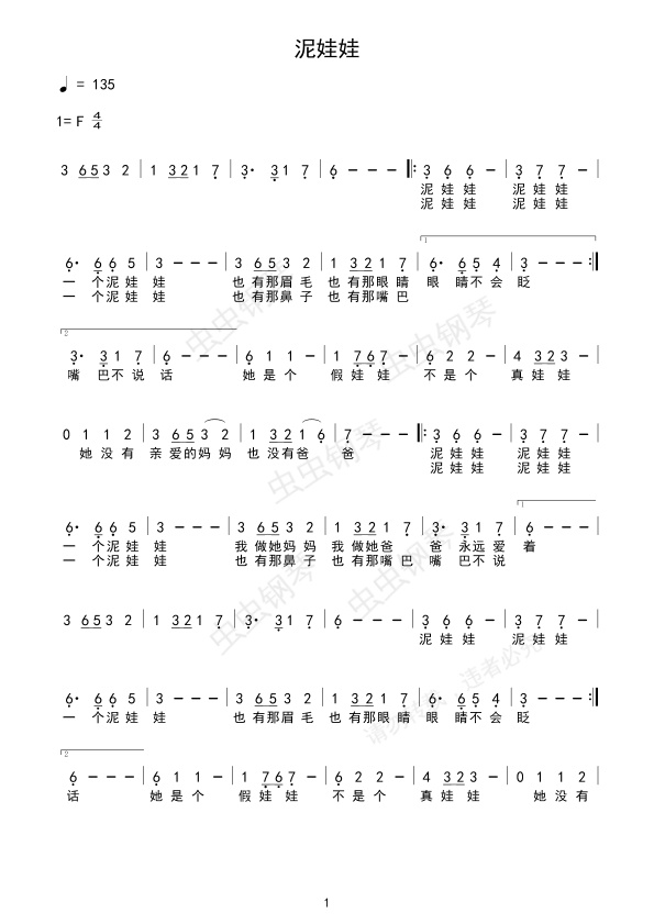 钢琴谱:泥娃娃