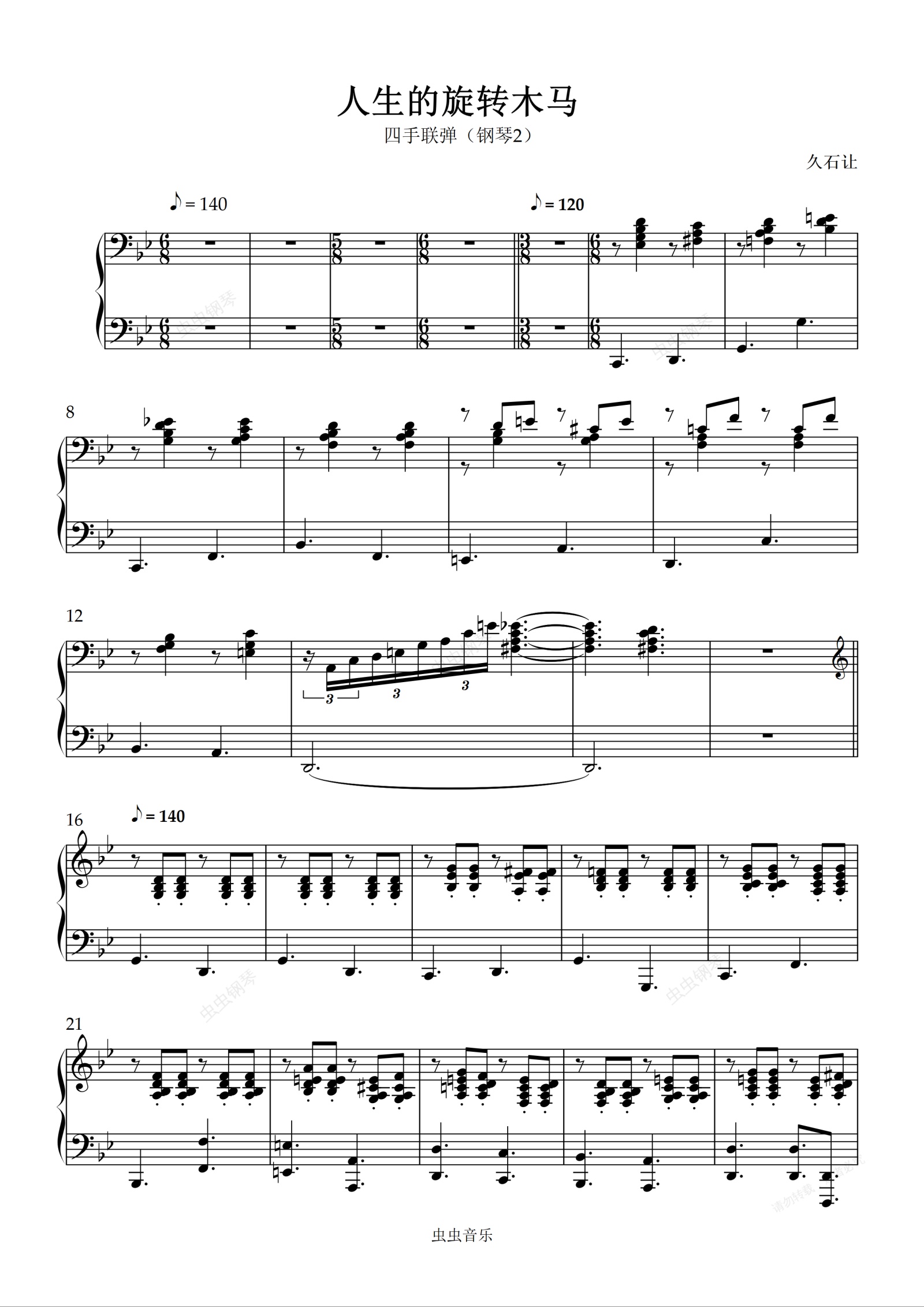 钢琴谱:(四手联弹)人生的旋转木马 (钢琴2)